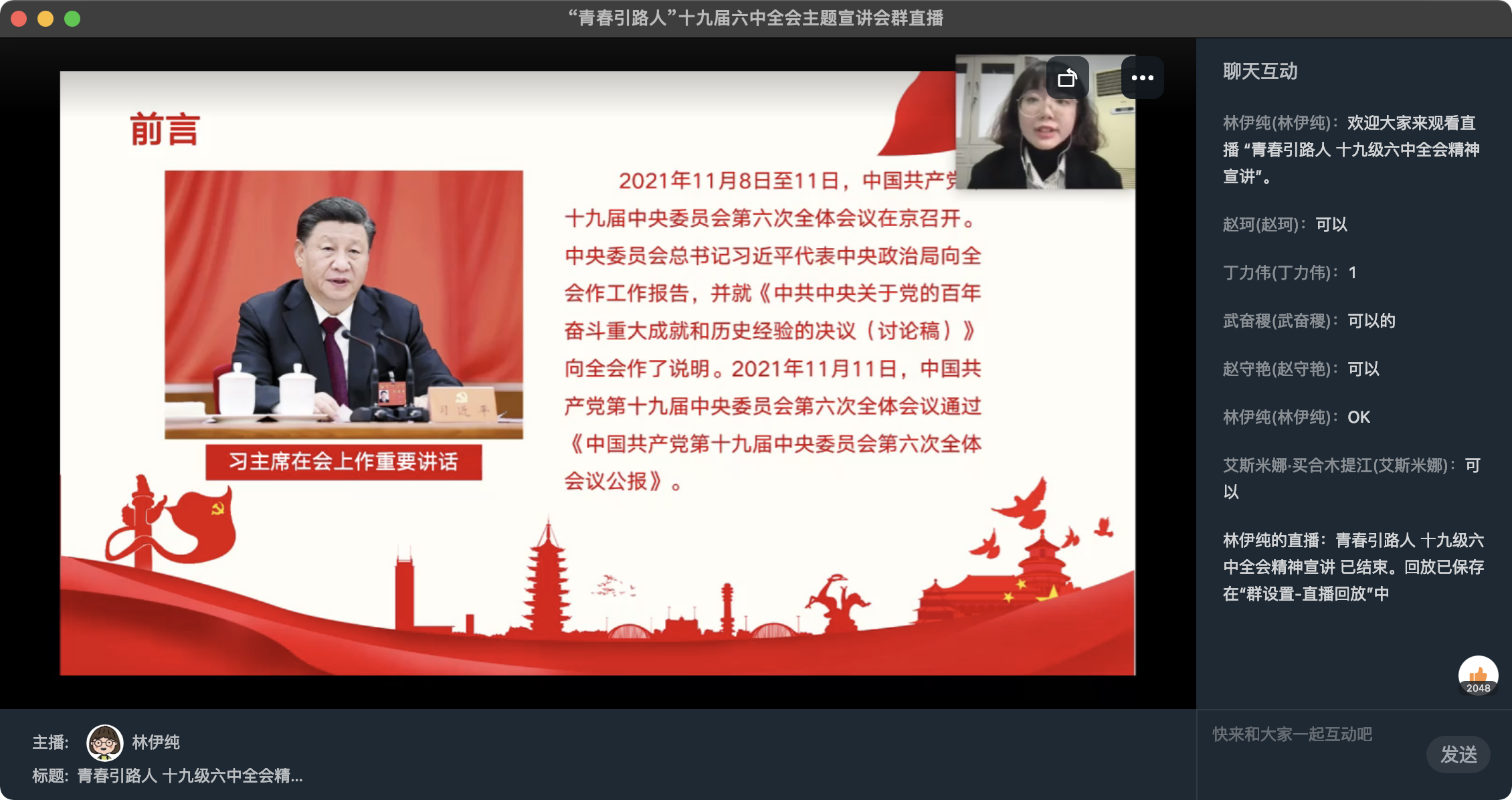 为引导广大学生深入学习党的十九届六中全会精神,2022年1月5日下午,51黑料 面向全体2021级本科生,特邀请人文学院林伊纯老师开展线上主题宣讲活动,活动由辅导员孙天一老师主持。
