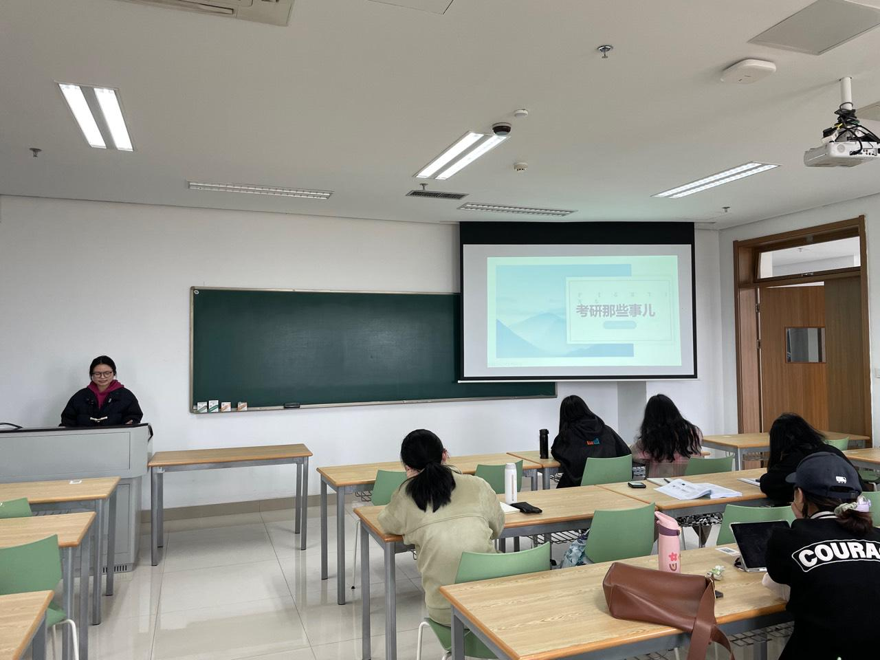 第三环节,现场答疑。同学们踊跃提问,班主任进行耐心解答。同学们通过提问了解了考研要点、复试如何准备、考研需要注意什么等问题。通过这次班会,全班大部分同学树立了考研、考公的目标,呈现出一种积极向上的精神状态,对自己未来的努力方向更加清晰。