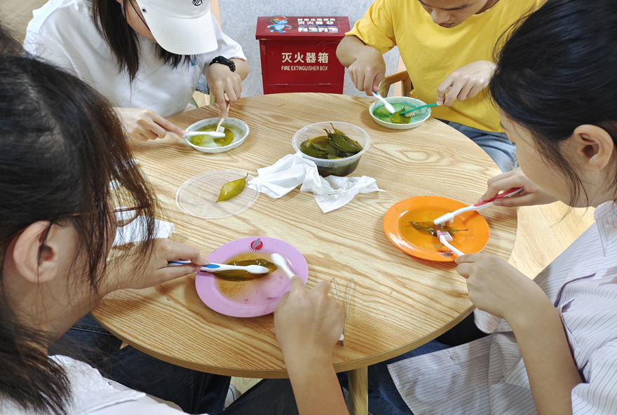 现场同学们在工作人员的指导与讲解下,对桂花树叶进行了细致处理,并成功制作出了精美的叶脉书签。通过此次活动,不仅丰富了校园课余文化生活,而且提高了同学们的实践能力,帮助同学们树立正确的环保意识,让同学们在活动中体会生物科学的无限魅力。