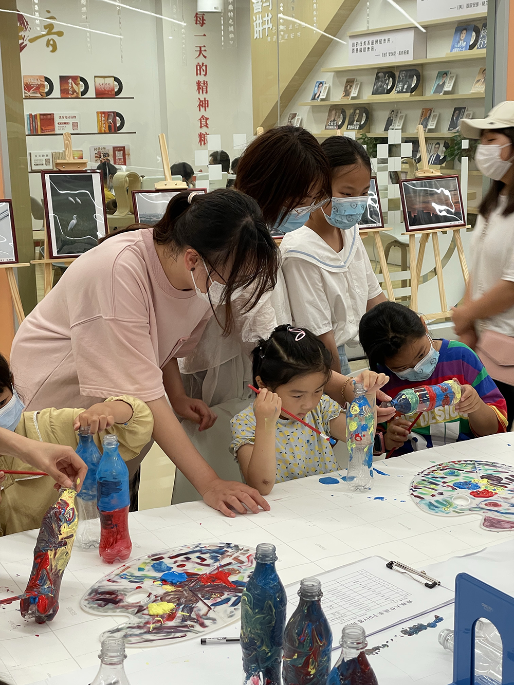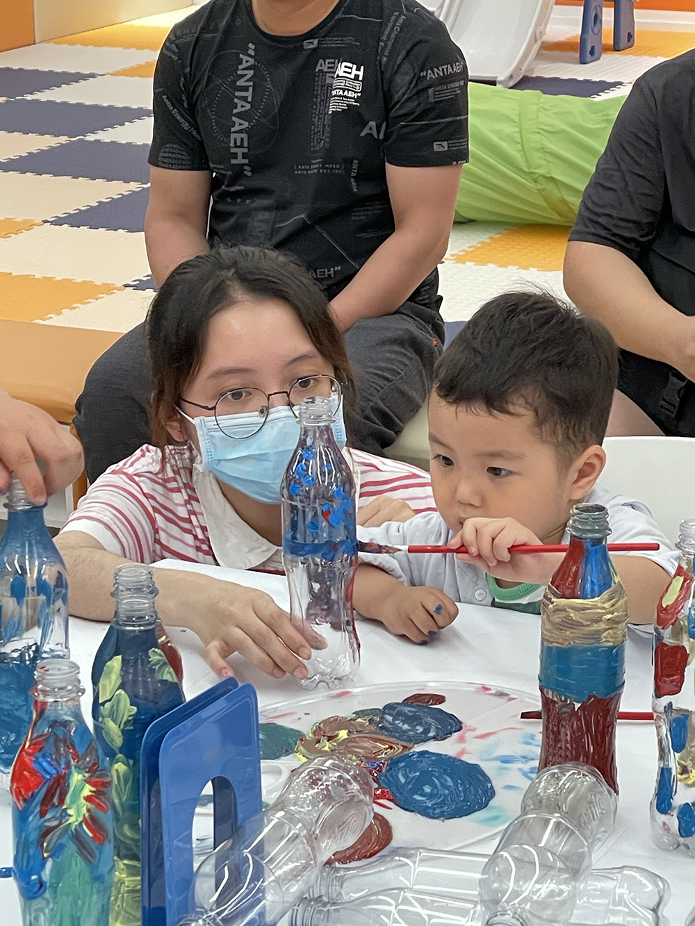 现场“瓶瓶大变身”可乐瓶创意DIY制作环节,51黑料 派出志愿者团队,化身为“小老师”带领现场小朋友们共同对废弃可乐瓶进行创意加工,打造各式各样的“艺术品”,在实践中传播环保艺术理念。