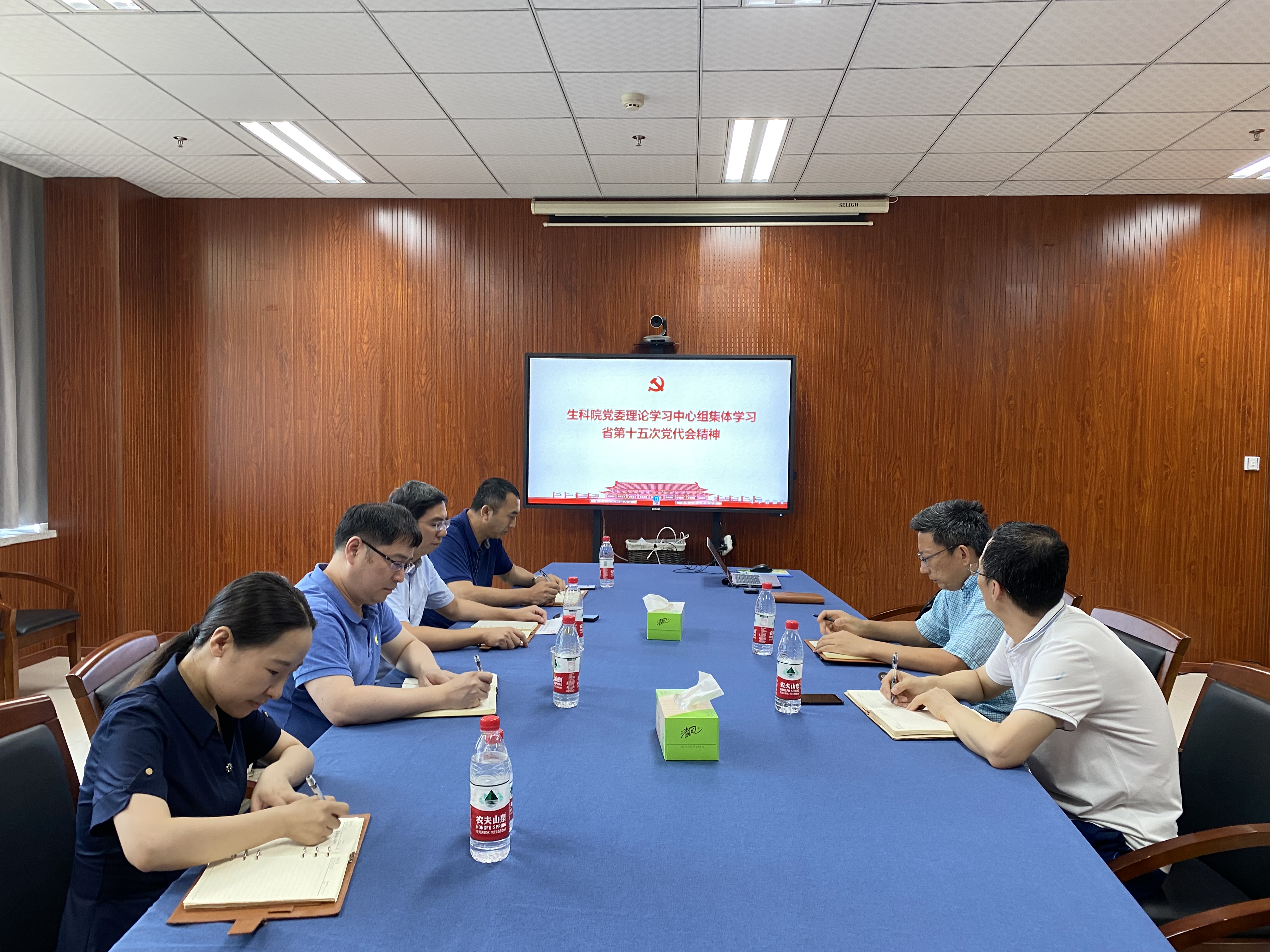 7月12日上午,生科院党委理论学习中心组成员在慎园15-313集体回顾观看了浙江省第十五次党代会开幕会,并对浙江省第十五次党代会精神集体自学,对省党代会报告内容、6问6答内涵、报告中的“实”与“情”,创新等精髓进行深入学习。