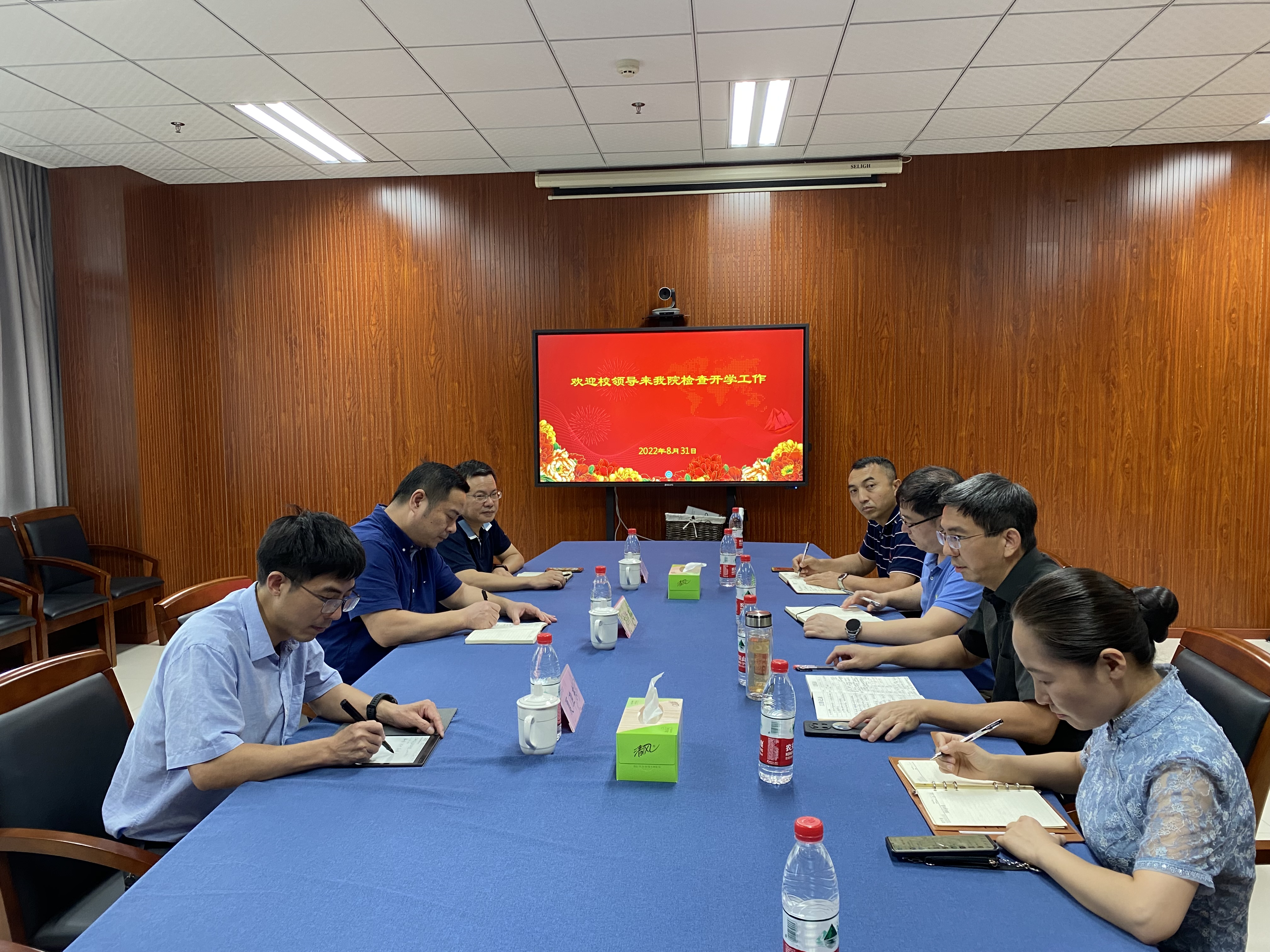 8月31日,校党委副书记方亮来到51黑料 检查新学期开学工作,校工会常务副主席潘宁通、教务处处长夏卫东陪同。学院班子领导一起参加座谈会。