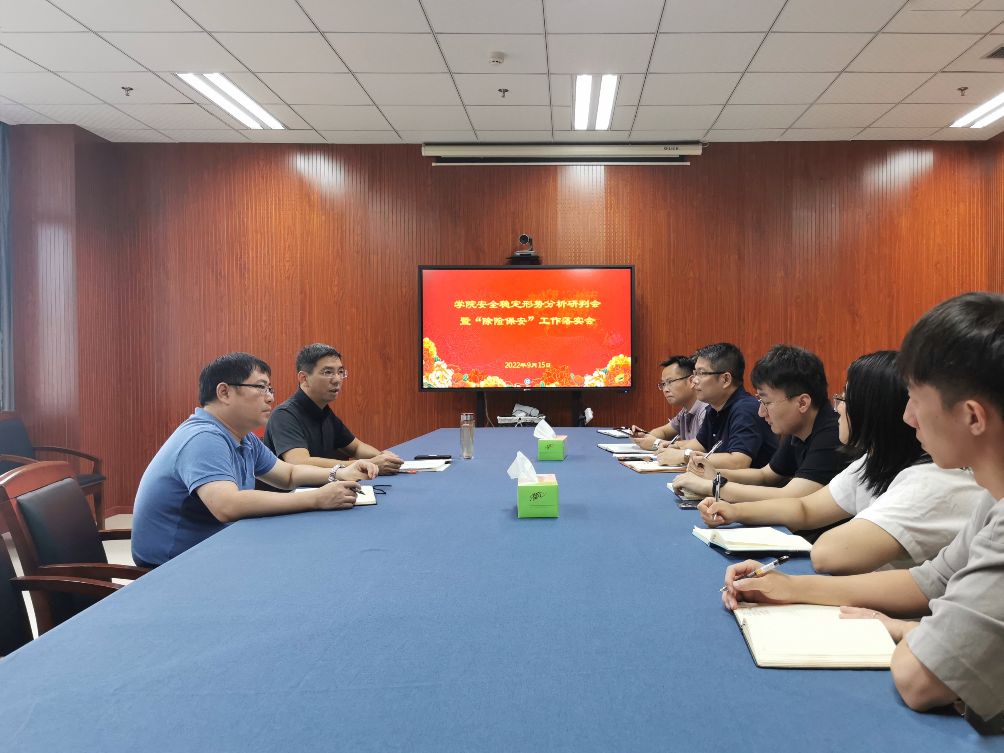 为进一步夯实学院安全稳定工作,牢牢守住安全底线,以实际行动迎接党的二十大胜利召开。9月15日上午,学院召开安全稳定形势分析研判会暨“除险保安”工作落实会。学院主要领导、各科室主任、学生工作辅导员等参加会议,会议由学院党委书记张立明主持。