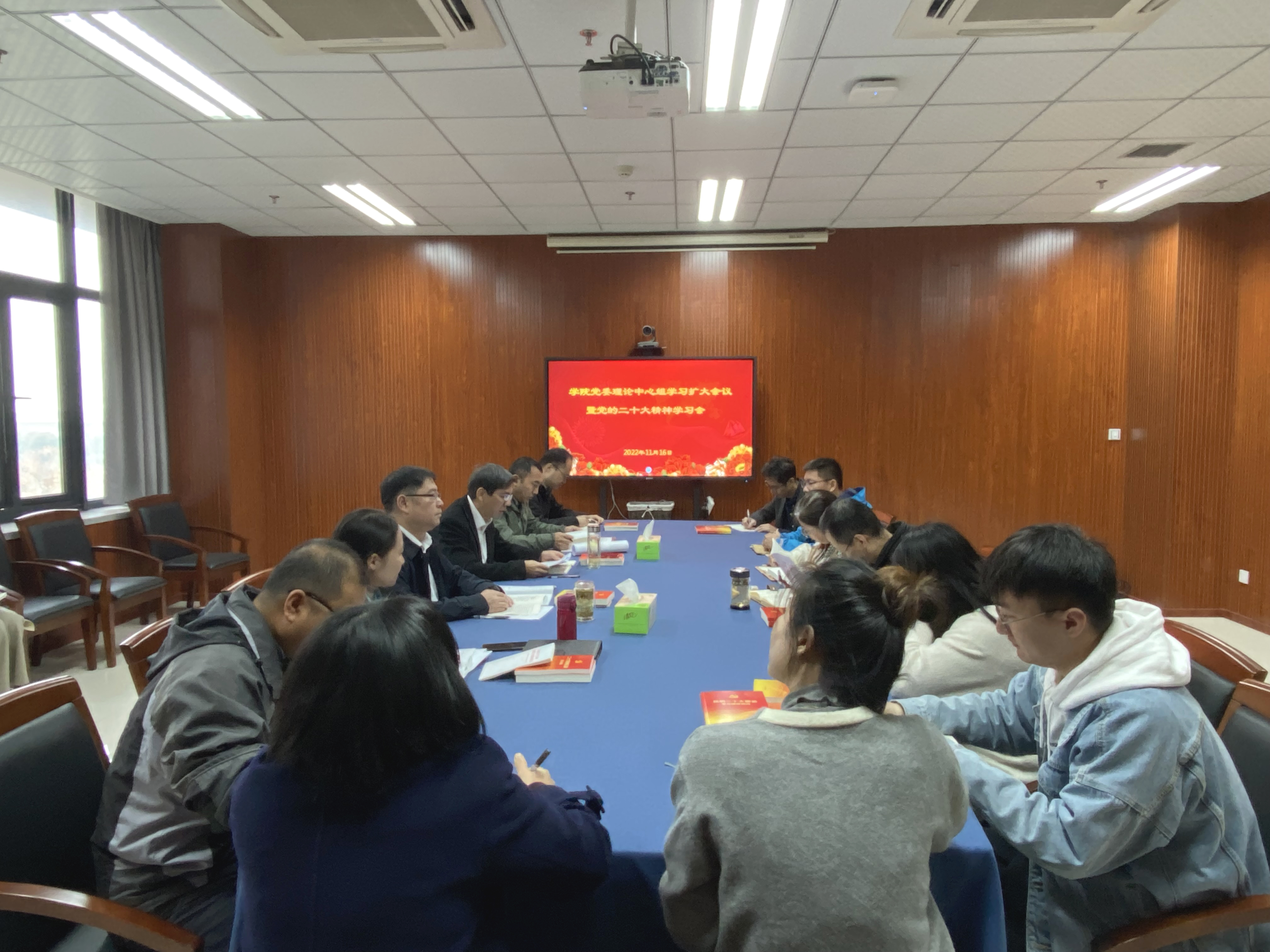 院党委书记张立明主持会议并讲话。中心组成员结合前期学习体会,立足学院发展实际,作交流发言。各党支部书记、系主任和科室主任等参会。