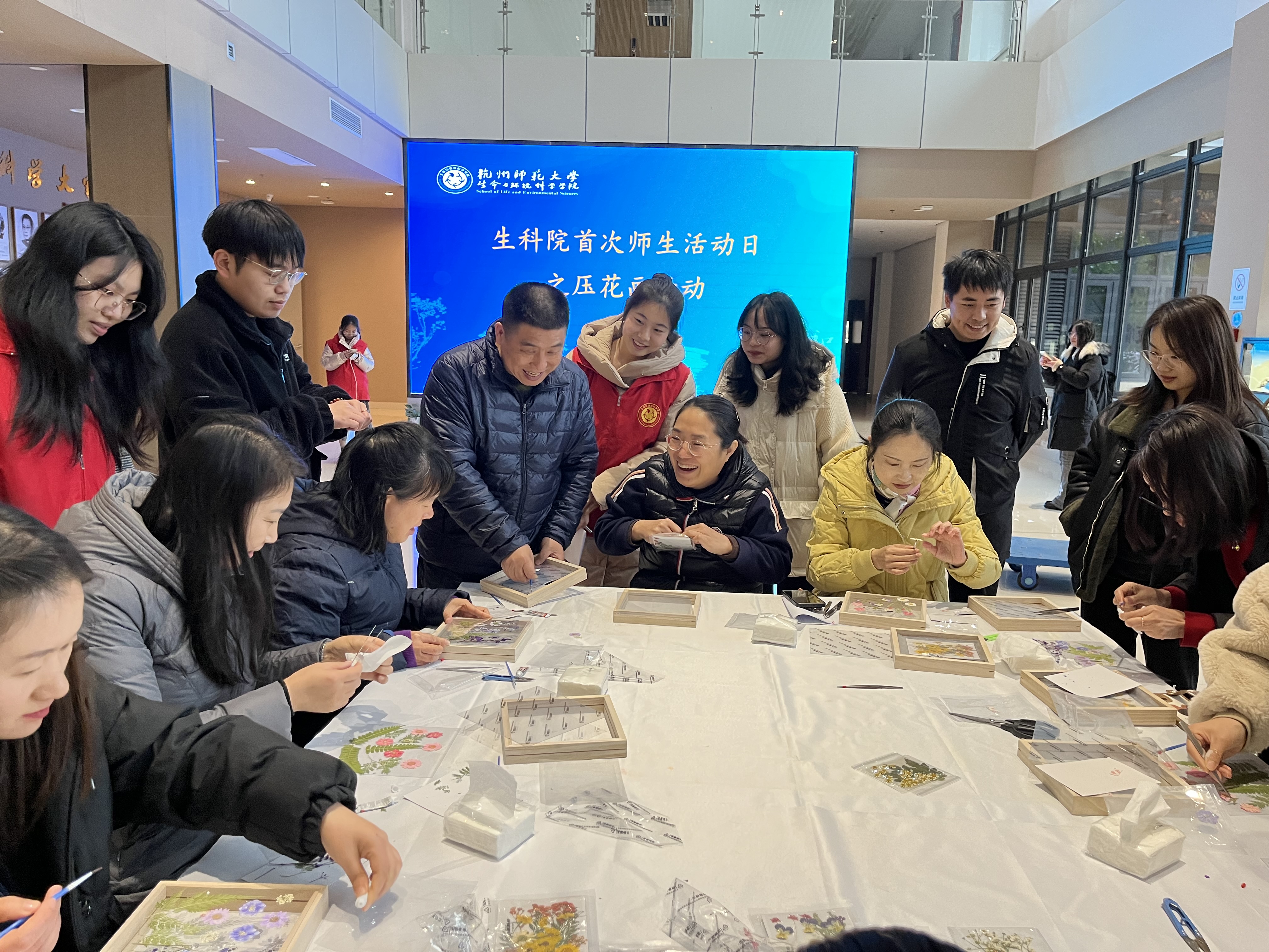 第二部分是师生压花画活动,师生们通过悉心选取自然界中的花草等植物,并以植物的枝叶花果为设计重点,依其自然形态、色彩、质感,融入绘画艺术手法压贴成格调高雅、色彩丰富、形式多样的干花艺术品。