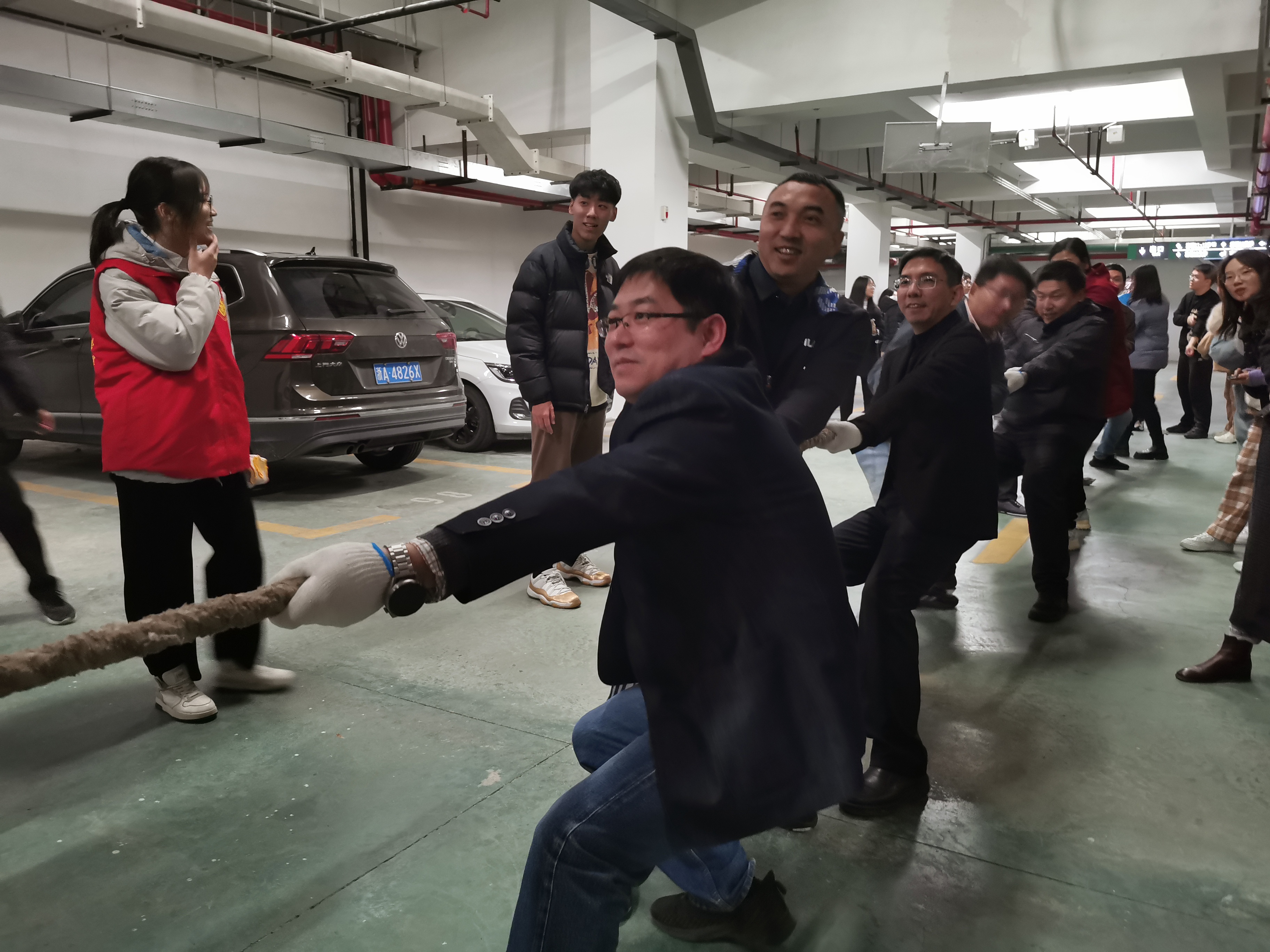 第三部分师生拔河比赛:各课题组师生、党政领导组、行政教辅组等20个队伍参加拔河比赛,比赛异常激烈,经过层层比赛,最终林智杰课题组、王慧中课题组、董鸣课题组分获前三名。