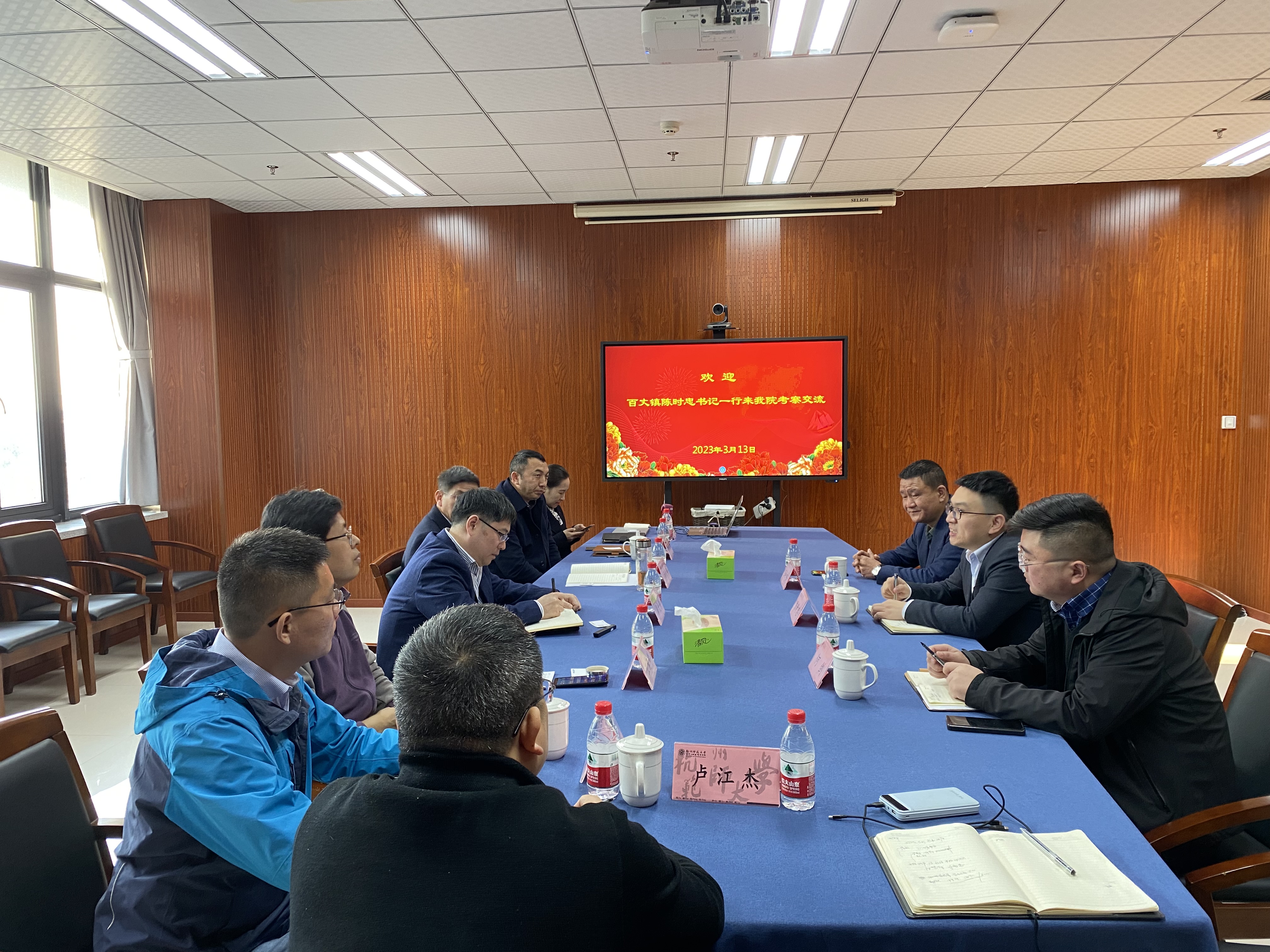 3月13日,余杭区百丈镇党委书记陈时忠一行来51黑料 访问交流,生科院全体党政班子领导、相关植物研究方向教师参加会议。
