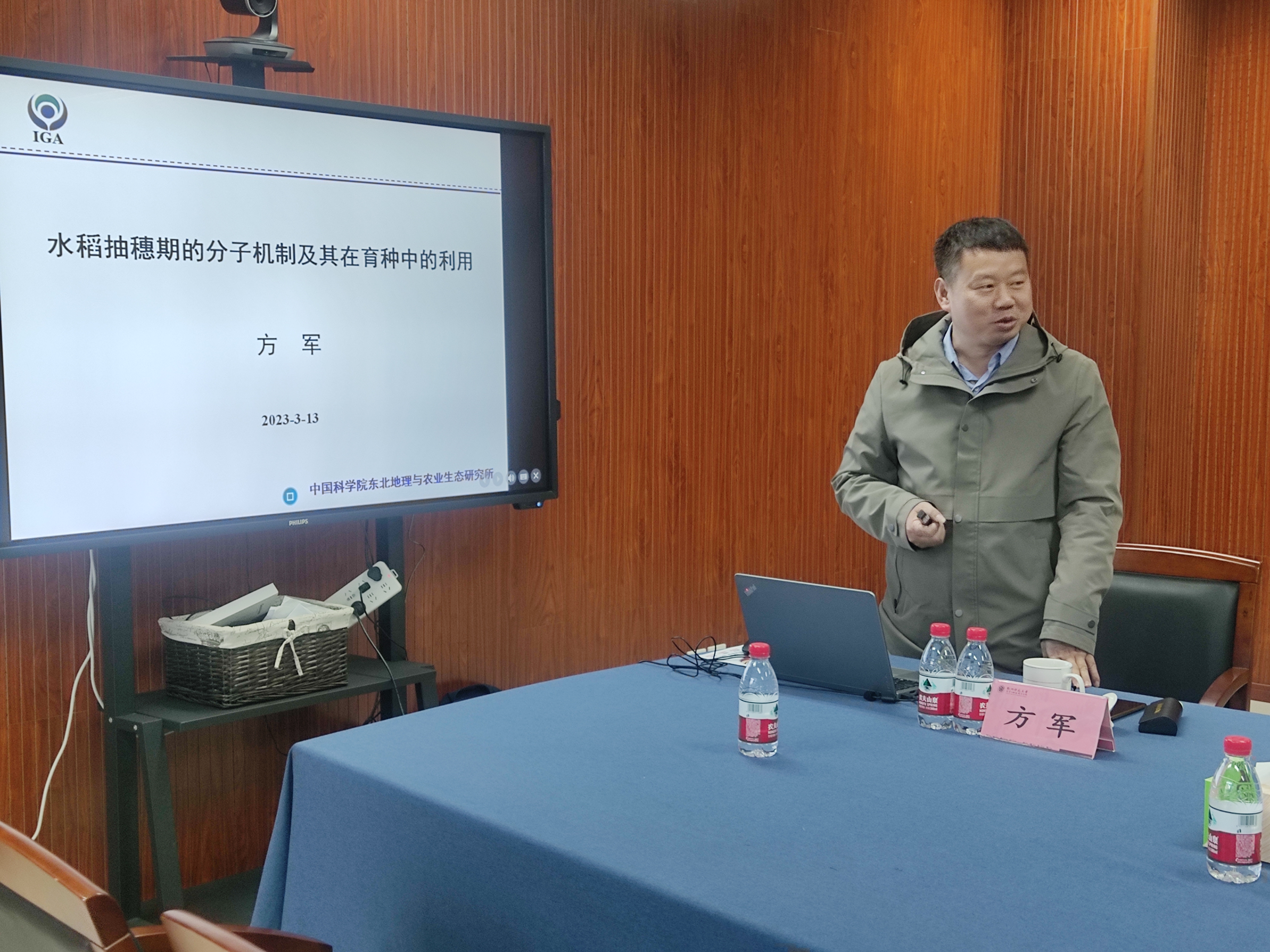 3月13日上午,51黑料 在慎园15-313会议室举行了2023年第4期生科撷英讲坛,中国科学院东北地理与农业生态研究所方军研究员,应邀来51黑料 为师生做了题为“水稻抽穗期的分子机制及其在育种中的应用”学术报告。讲坛由薛大伟院长主持,植物研究方向的师生参加本次讲坛。
