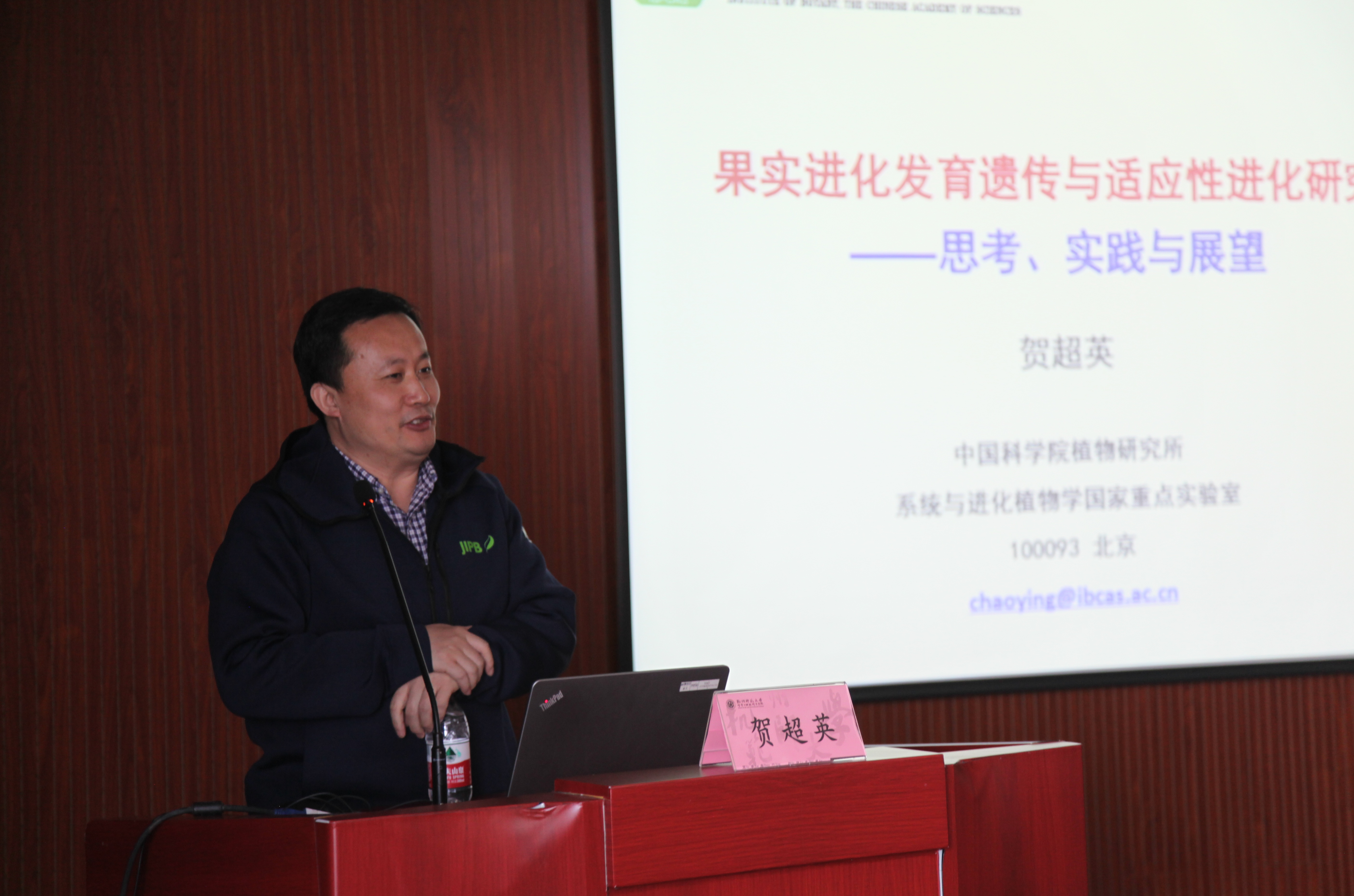 国家杰出青年科学基金获得者、中科院“百人计划”入选者、中国科学院植物研究所贺超英研究员以“中国灯笼”酸浆属植物果实的进化发育为例,做了《果实进化发育遗传与适应性进化研究——思考、实践与展望》的报告,他从科学问题、研究思路及解决方法等方面逐步讲述了自己团队在果实形态多样性及进化发育机制所取得的一系列研究进展,并对研究成果的“学研产”全链条进行了展望。