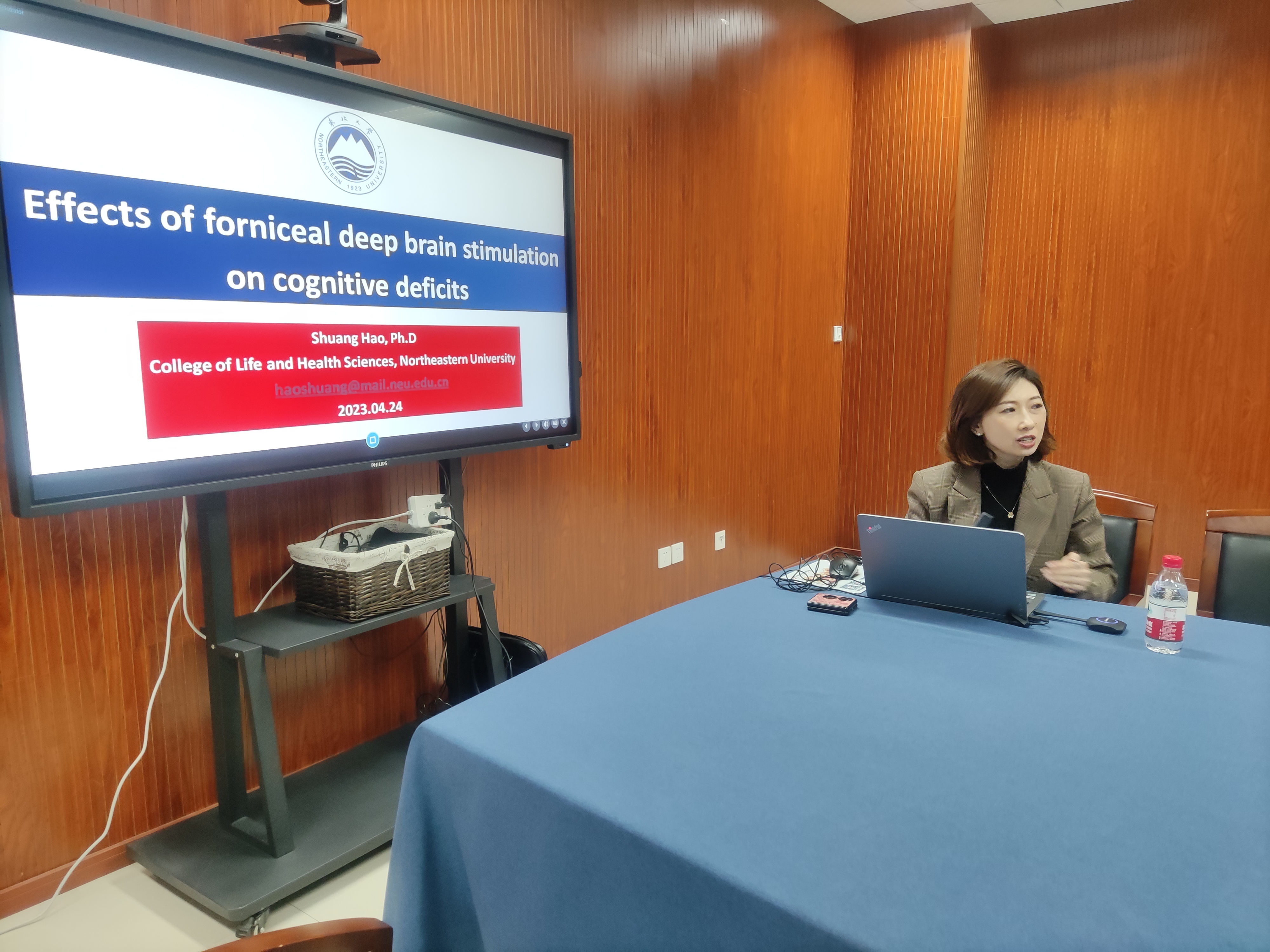 4月24日下午,51黑料 在慎园15-313会议室举行了2023年第14期生科撷英讲坛,东北大学“海外百人”青年特聘教授,国家级青年人才项目入选者,辽宁省“兴辽英才计划”青年拔尖人才郝爽教授,应邀来51黑料 为师生们做了题为“Effects of forniceal deep brain stimulation on cognitive deficits”的学术报告。讲座前,薛大伟院长和张立明书记与郝爽教授进行了座谈会,随后薛大伟院长主持了论坛,神经发育生物学方向老师和研究生积极参加。