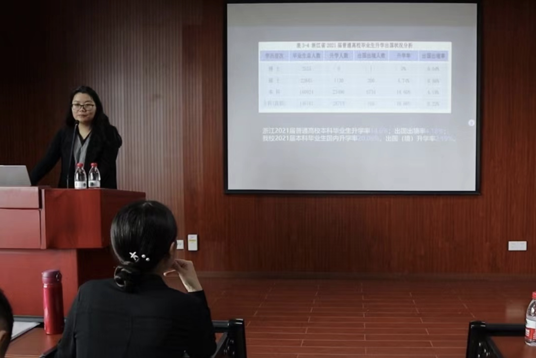校国际交流处项目主管曹馨月就学生出国(境)留学作了主题宣讲,通过“why”、“what”、“how”等三个方面解答了同学们关于出国(境)留学的疑问,并就考研流程、留学申请等作了时间梳理,帮助同学们了解并关注时间节点。