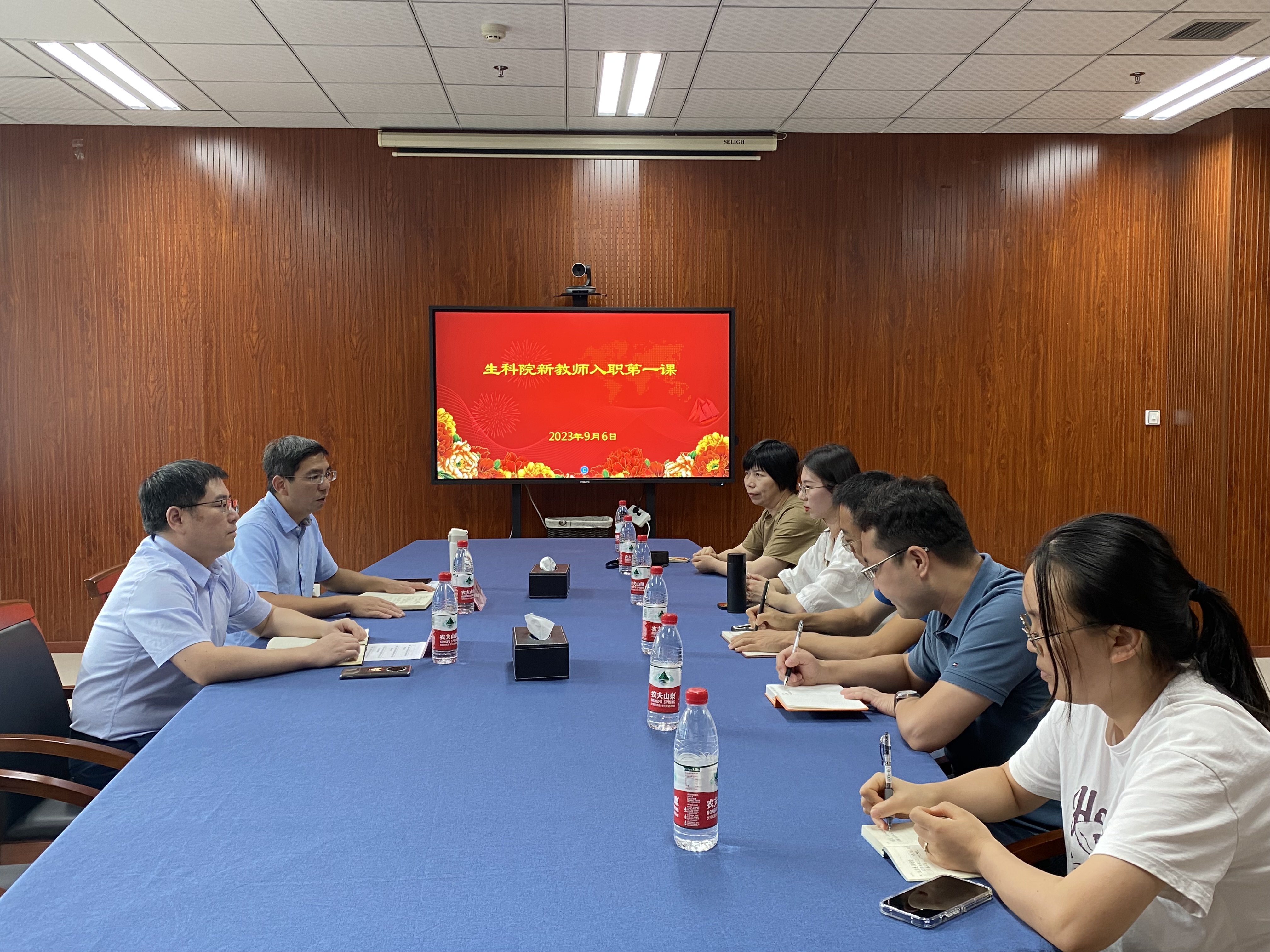 教好书,育好人。新学期伊始,生科院在慎园15-313召开新教师入职第一课。院长薛大伟、院党委书记张立明和全体新教师出席会议。