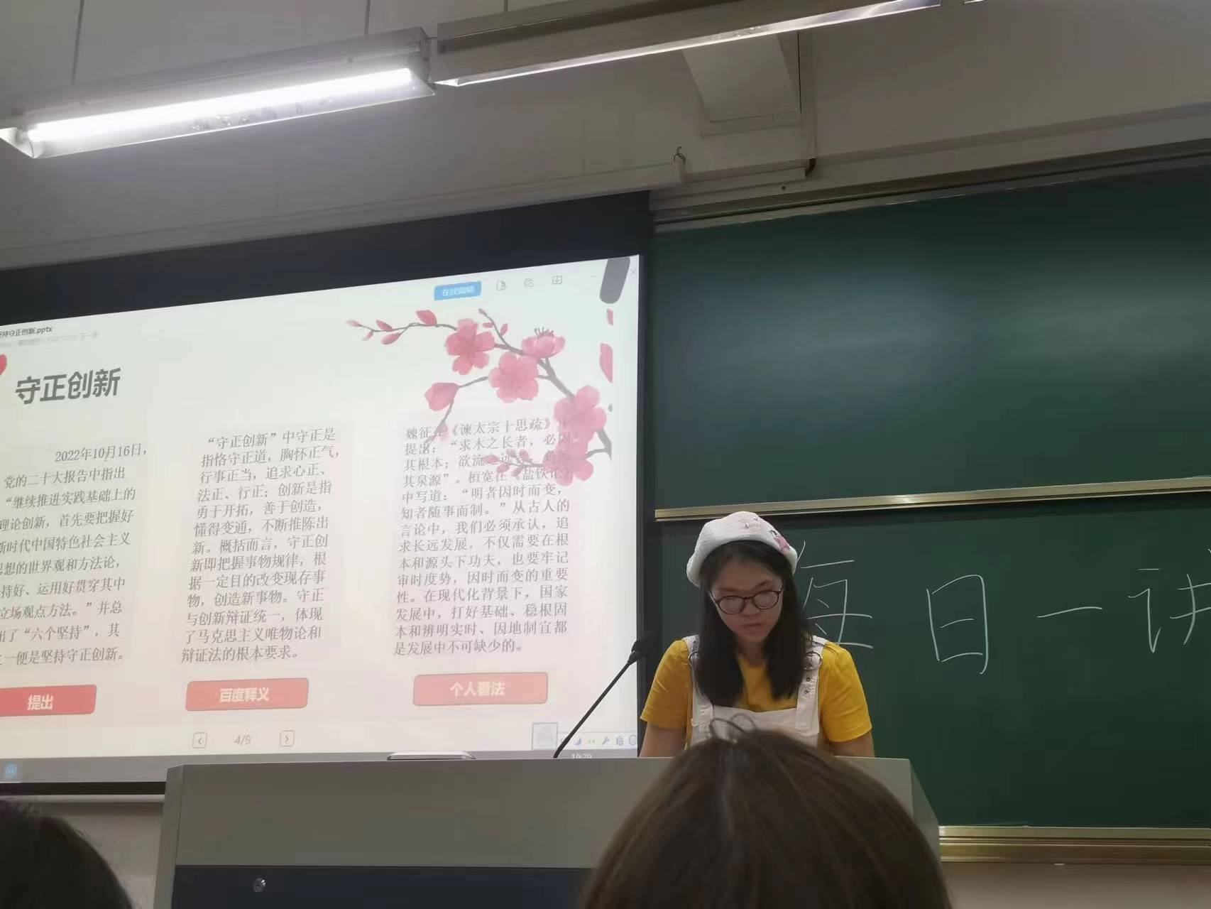 2023年10月18日生技232的李梦婷同学在B号楼311进行了以“坚持守正创新,坚定文化自信”为主题的每日一讲活动。