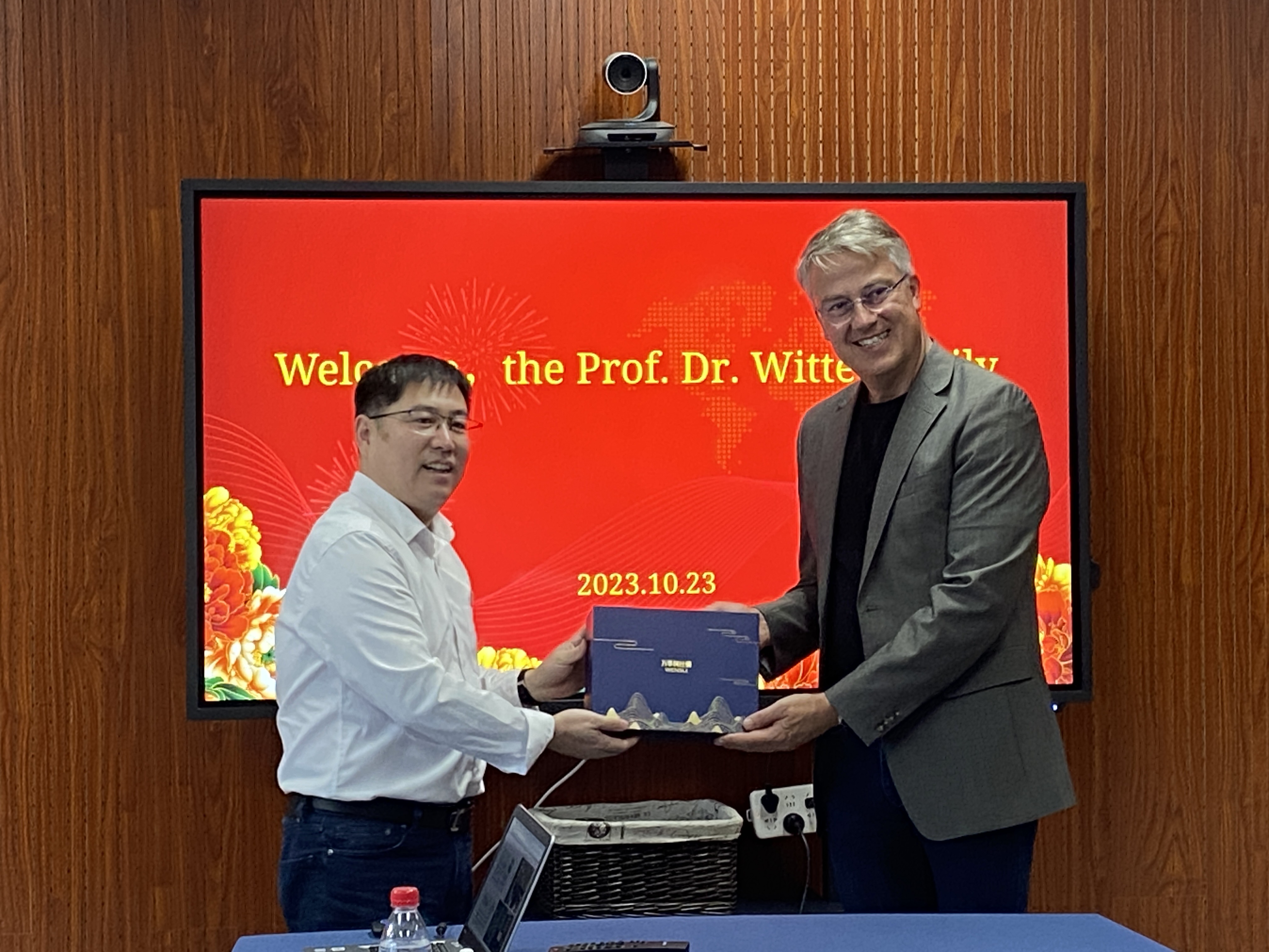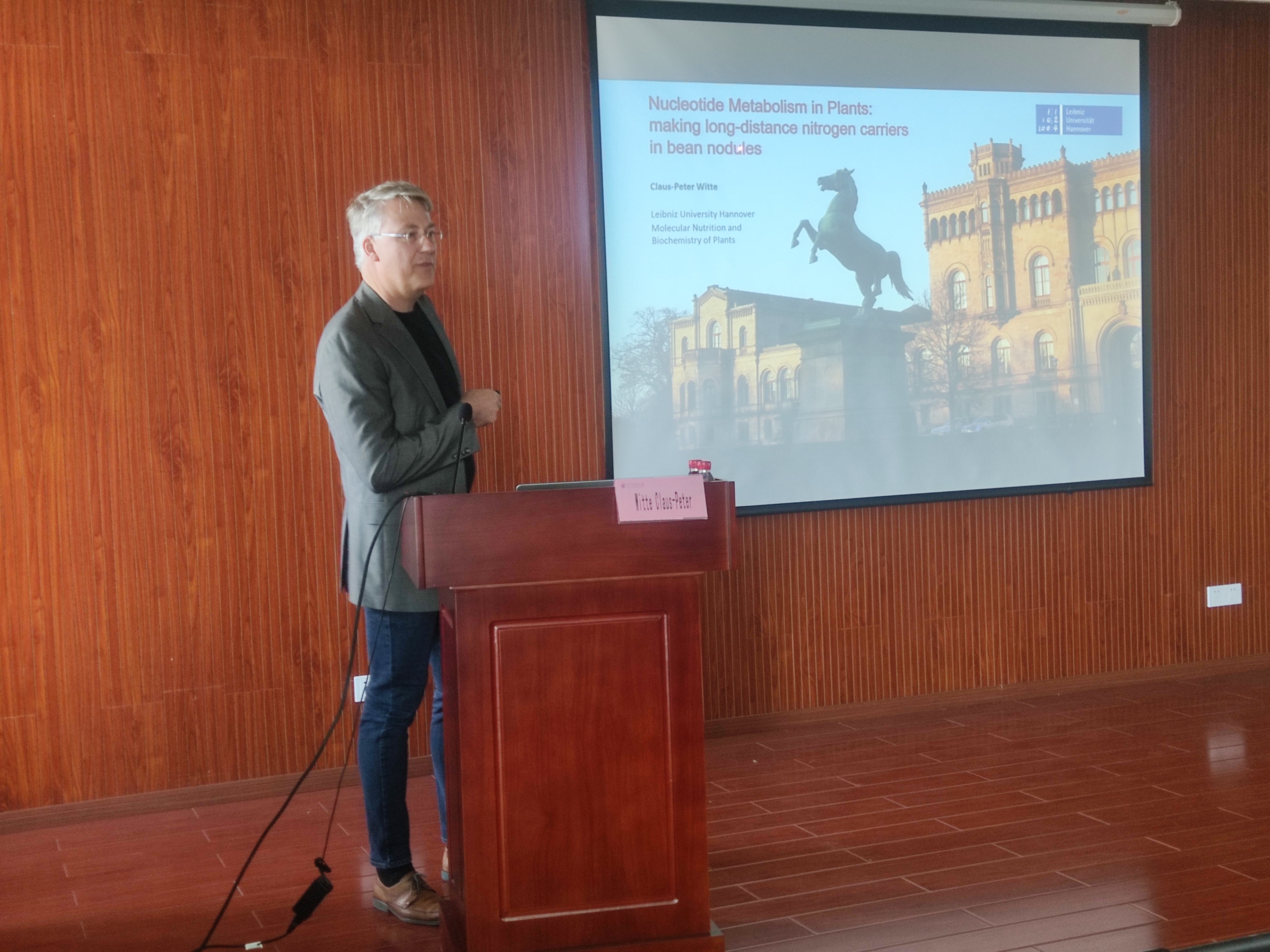10月23日下午,51黑料 在慎园15-309学术报告厅举行了2023年第25期生科撷英讲坛,德国汉诺威大学Claus-Peter Witte教授,应邀来51黑料 为师生们做了题为“Nucleotide metabolism in plants: making long-distance nitrogen carriers in bean nodules”的学术报告,报告前,薛大伟院长和张立明书记与Claus-Peter Witte教授进行了座谈会,双方就加强两校科研合作交换了意见,在开展科研合作、教师和研究生互访交流等方面达成初步意向。
