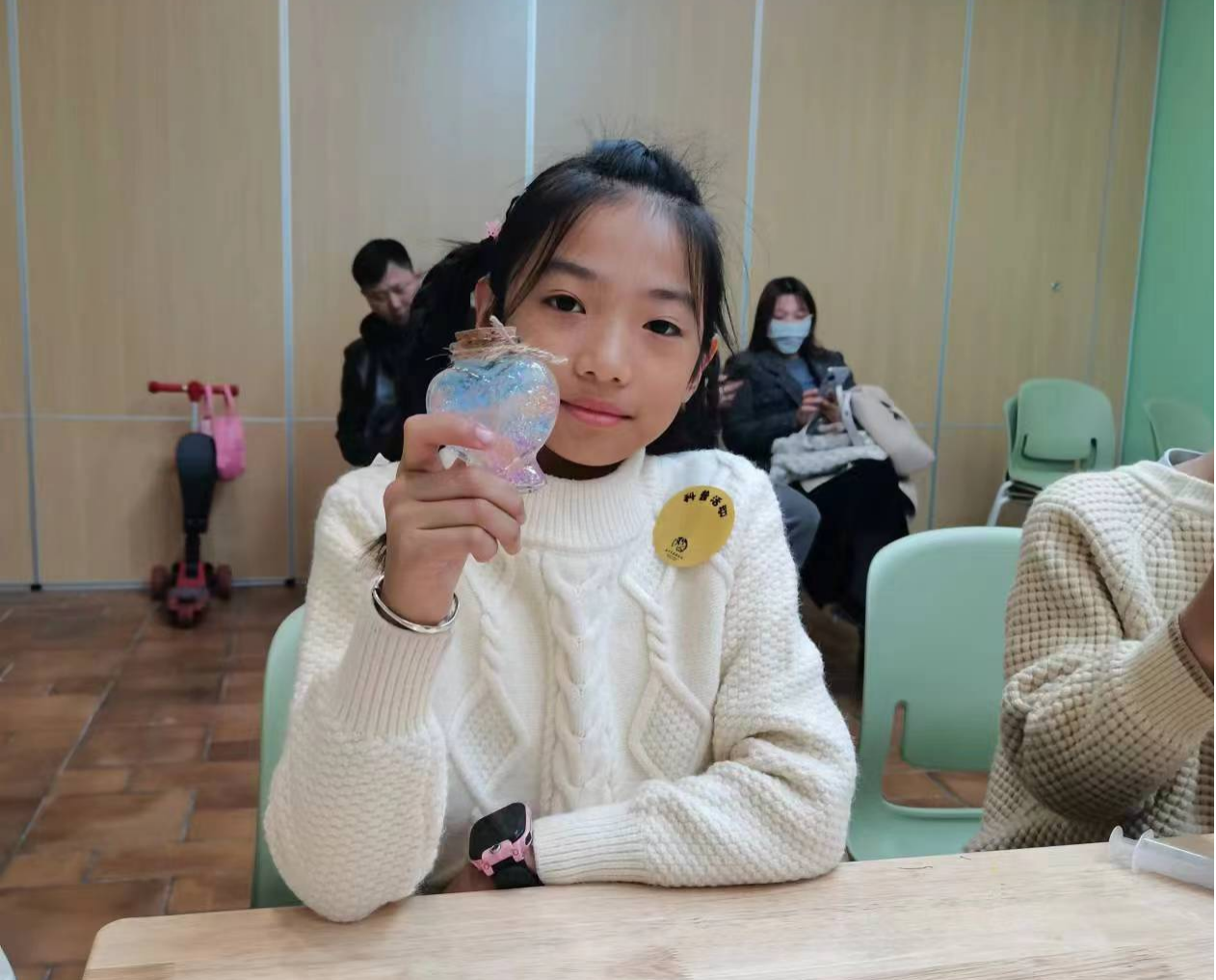 接下来,在家长与志愿者的协助下,小朋友们亲手制作了海洋瓶。美丽的海洋瓶是在小朋友的努力下制作出来的,就像美丽的海洋需要每个人的努力维护。