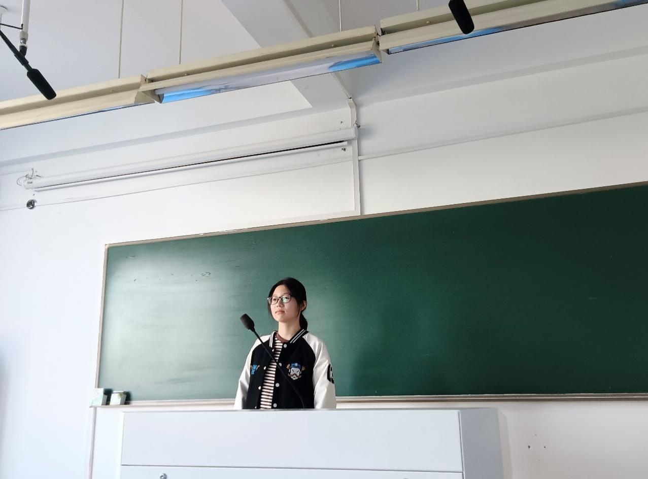 最后,汪炘玥同学用最真诚的态度给同学们提了如何将爱国情怀外化于行。新时代青年是新发于硎之利刃,应该勇于承担社会责任,挑起时代大梁:新时代青年是林中秀木,应该努力培养自身才干,用更好的能力回报国家。我们要成为标注时代的生动注脚,成为国家栋梁。