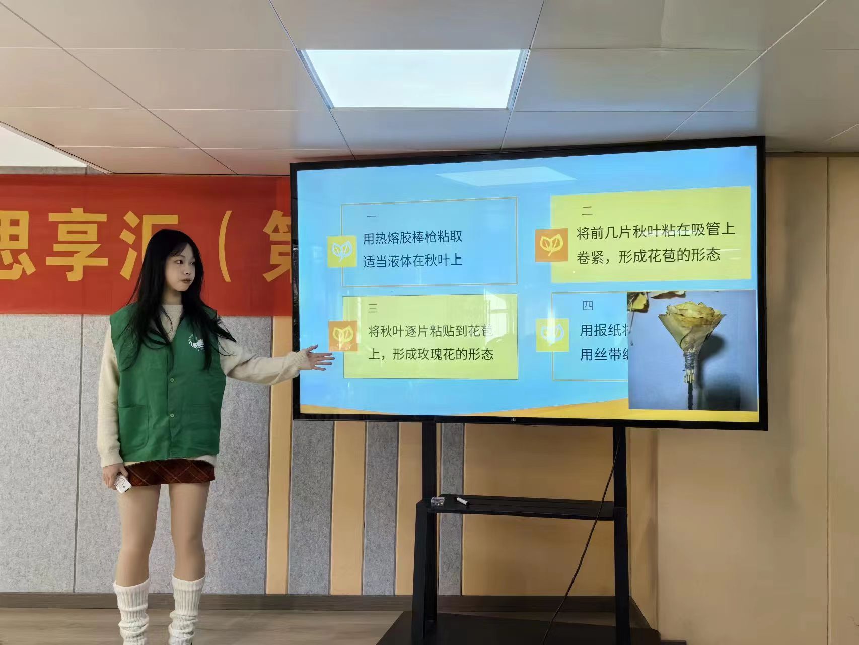12月17日下午,生科院“绿之翼”环保协会面向协会会员,在下沙校区大学生成长指导中心开展了“滔源讲堂”系列活动——秋叶生花。