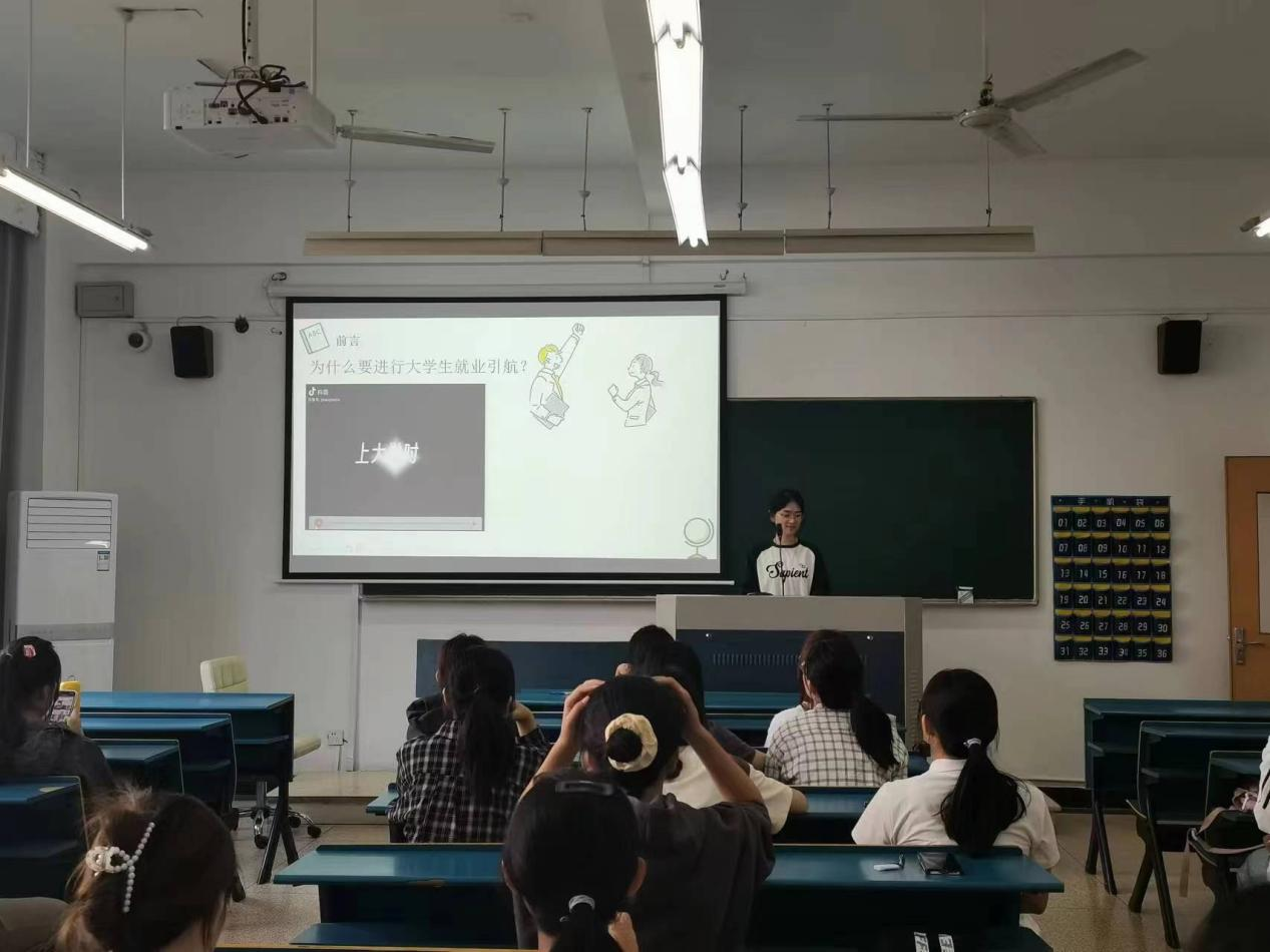 为了让同学们加快适应大学生活,明确自己学习目标,切实落实推进就业相关工作,2023年12月5日10点40生科231团支部在教室开展大学生就业引航活动。此次主讲人为231班团支书李心雅同学,生科231团支部全体同学参加活动。