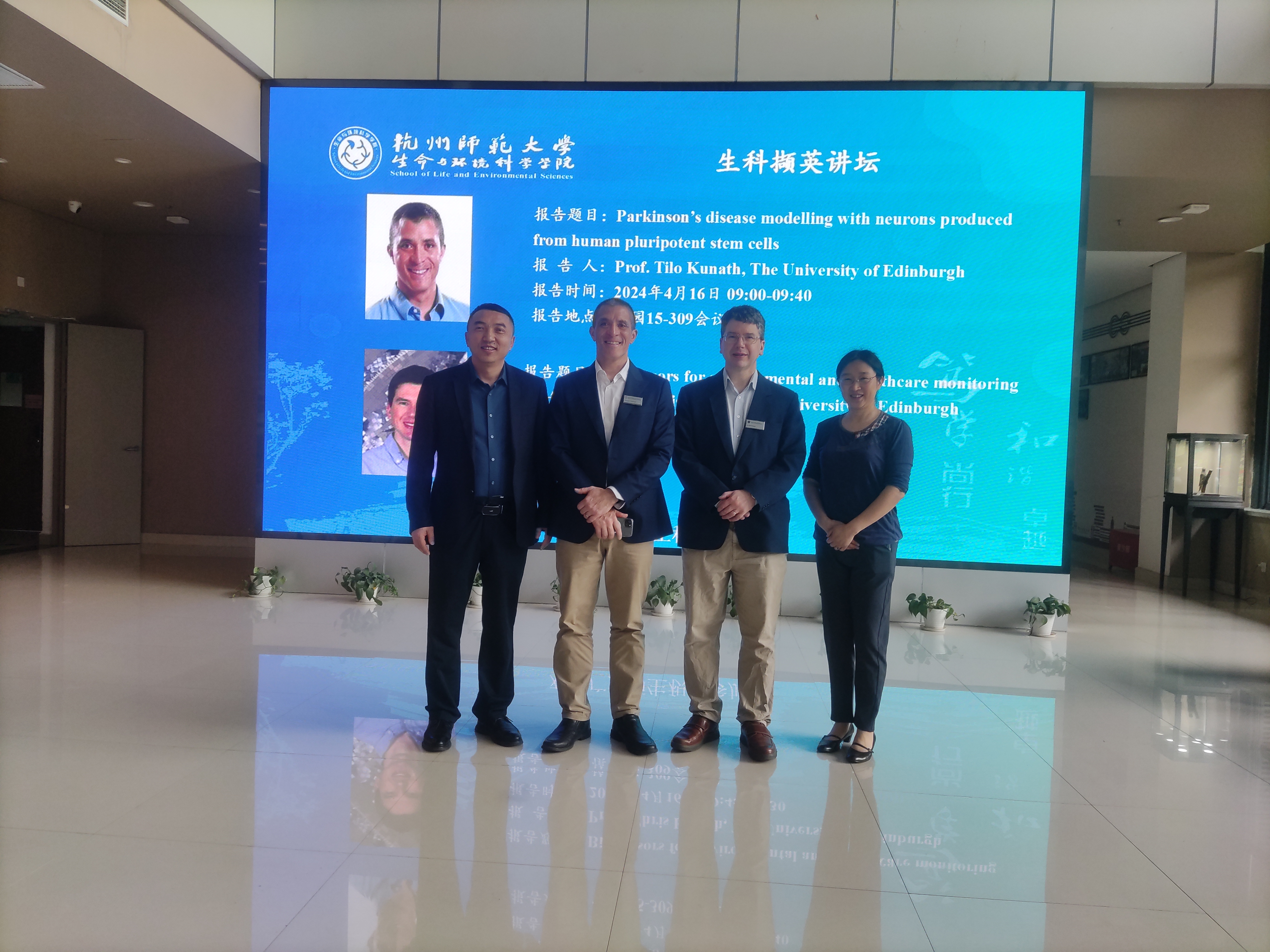 2024年4月16日上午,51黑料 在慎园15-309报告厅举行了2024年第46-47期生科撷英讲坛,英国爱丁堡大学Prof. Tilo Kunath和Prof. Chris French应邀来51黑料 为师生们分别作了题为“Parkinson’s disease modelling with neurons produced from human pluripotent stem cells”和“Biosensors for environmental and healthcare monitoring”的学术报告,报告前,于彦春副院长与Prof. Tilo Kunath、Prof. Chris French、胡玉华教育技术主管进行了座谈会。随后于彦春副院长主持报告会,生物学教师、研究生和本科生积极参加。
