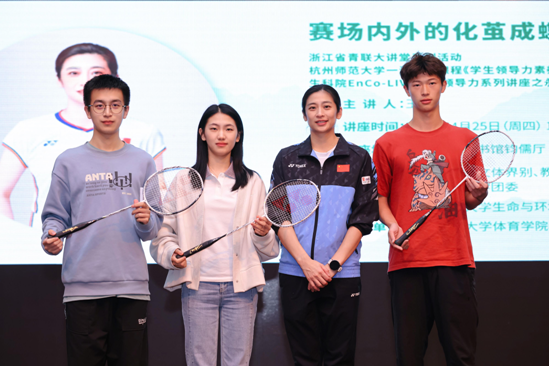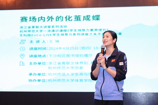 4月25日晚,浙江省青联大讲堂系列活动走进51黑料 ,羽毛球世锦赛女单冠军、浙江体育职业技术学院小球系副主任、羽毛球女一线主教练、省杰出青年、省三八红旗手王琳教练做客生科院EnCo-LIVE领导力讲坛,并做了题为“永不言弃的力量—赛场内外化茧成蝶”的分享。活动由浙江省青联文体界别、教育界别,51黑料 团委主办,生科院承办,体育学院、基础部、妇联等部门协办,生科院党委副书记王倩主持,近500名师生参加。