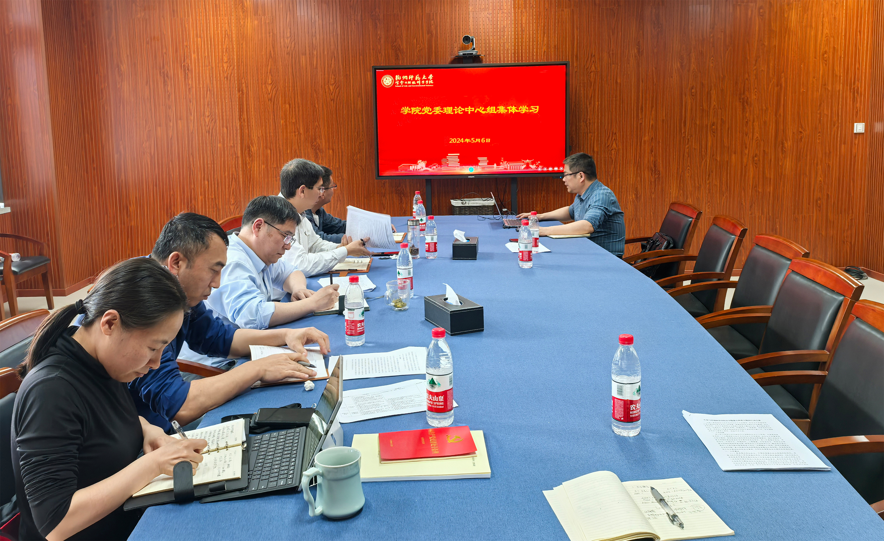 5月6日下午,生科院在慎园15-313会议室召开党纪处分条例集中学习会议暨学院党委理论学习中心组集体学习会,生科院全体党政班子成员参加。