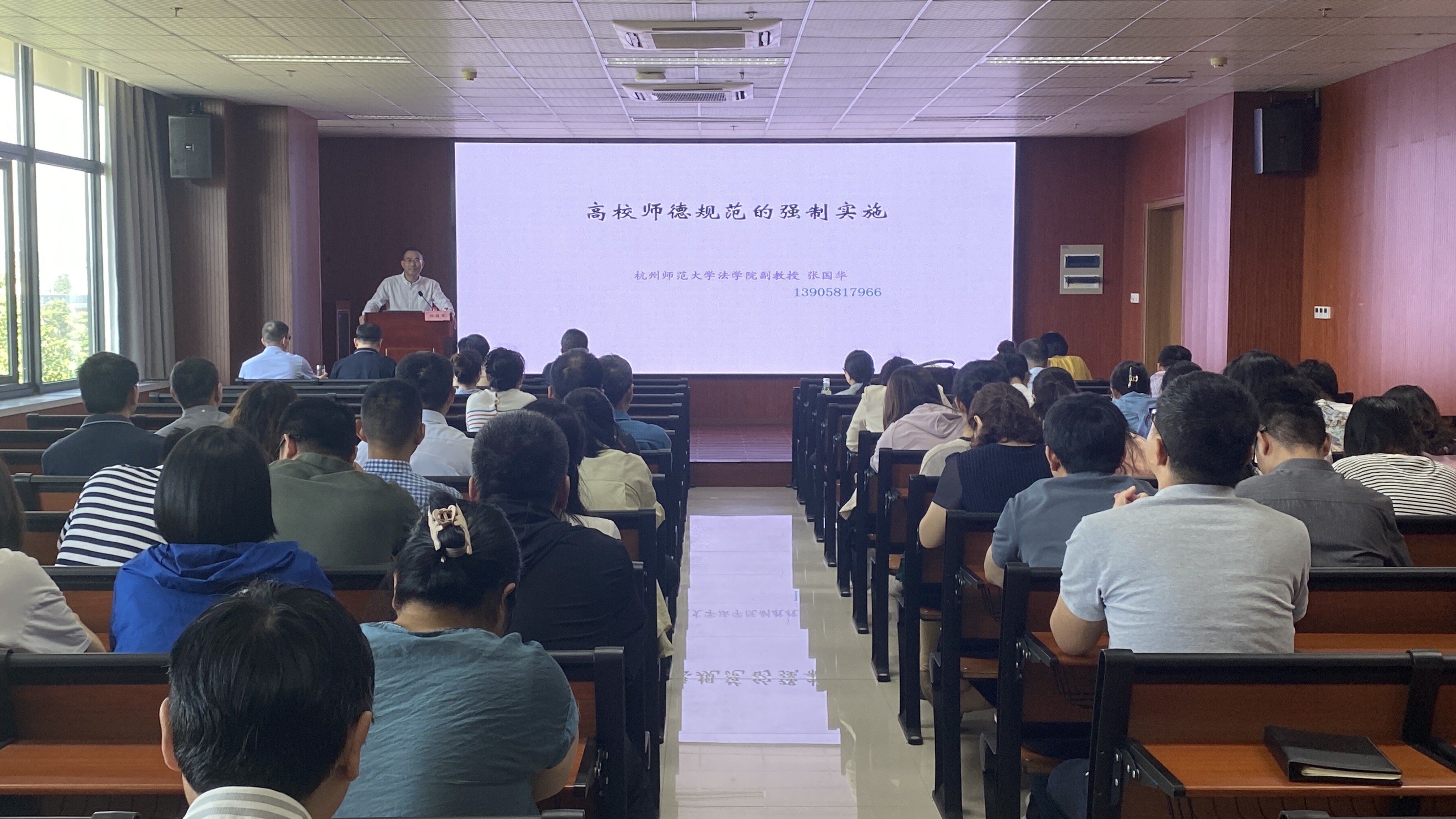 张教授在讲座中引用习近平总书记在中央全面依法治国委员会第三次会议上的讲话,强调了依法治校在高校管理中的重要性。他详细介绍了行为规范在社会秩序中的作用,并结合多个实际案例阐述了高校教师职业行为准则的具体内容。张教授特别指出,建立师德考核负面清单制度和教师个人信用记录,以及完善失信惩戒机制,是解决师德失范问题的重要措施。此外,他还详细讲解了师德失范的纪律惩戒和法律后果,强调了对教师职业道德的严格要求和规范。