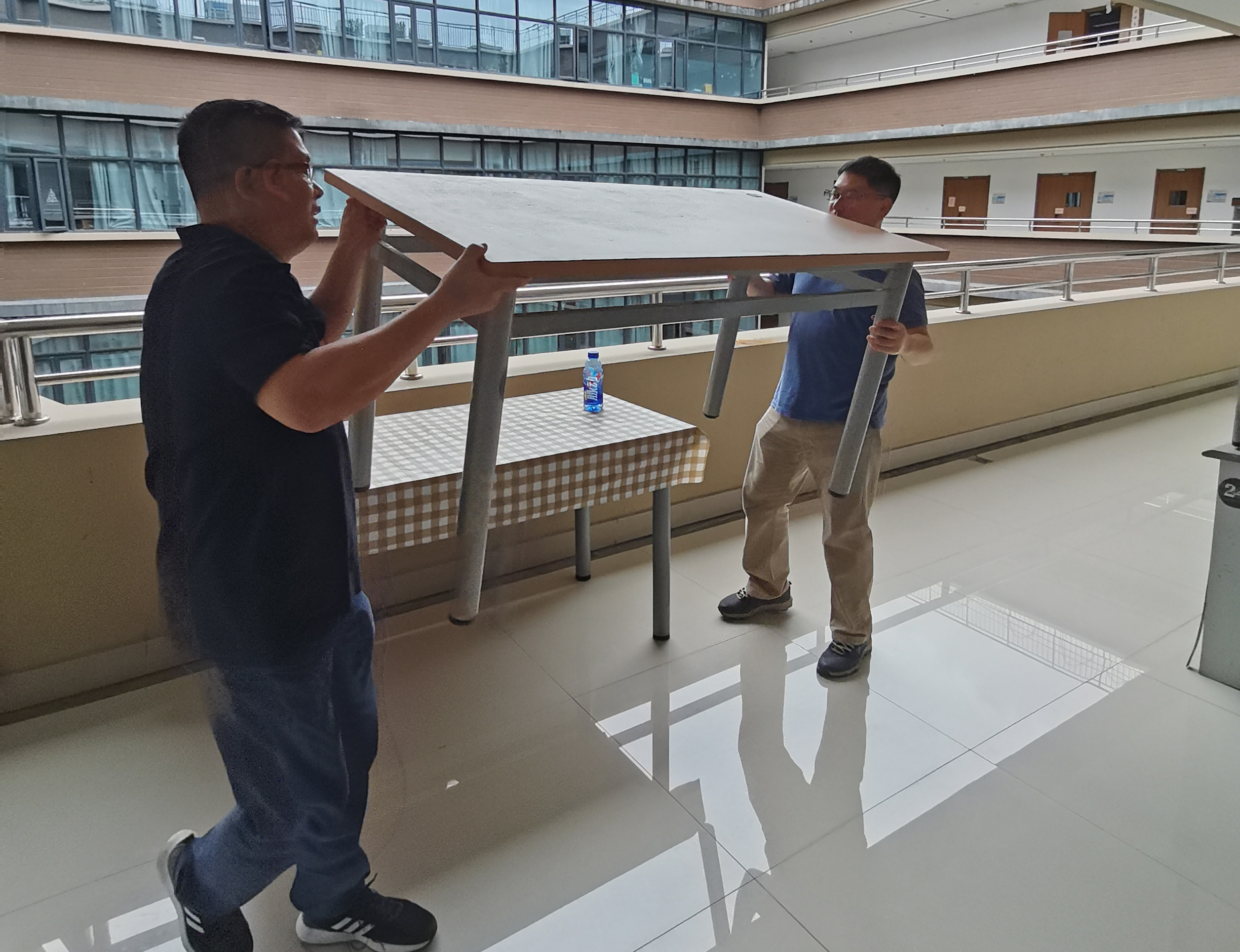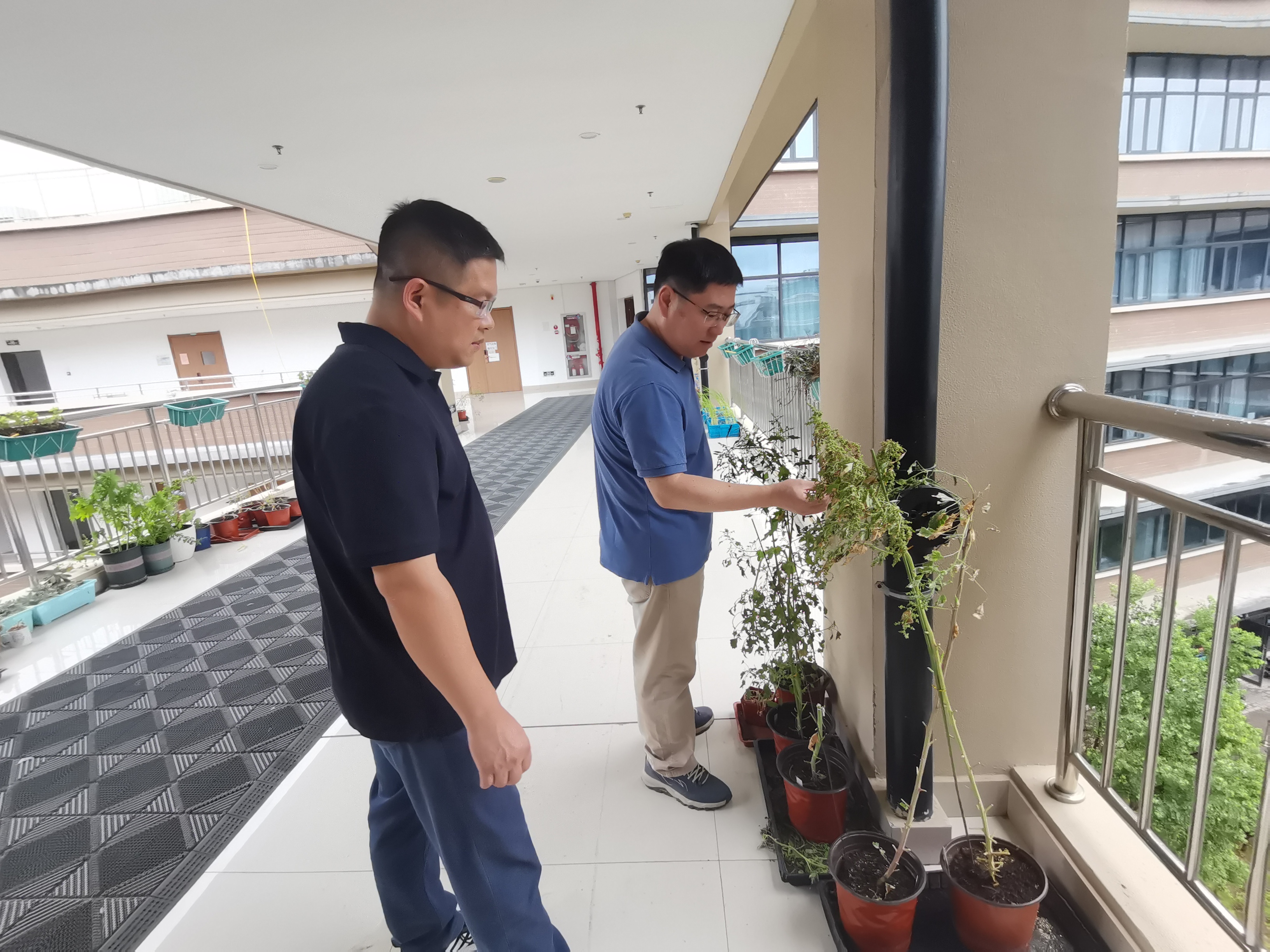 7月25日一早,薛大伟院长带队对学院各实验室走廊、屋顶、室外大棚等重点防范部位进行仔细检查,对检查中发现的安全问题及隐患进行了现场整改,将14号楼和16号楼放在走廊台阶上的杂物一一移开,叠放在高处的桌子搬离。