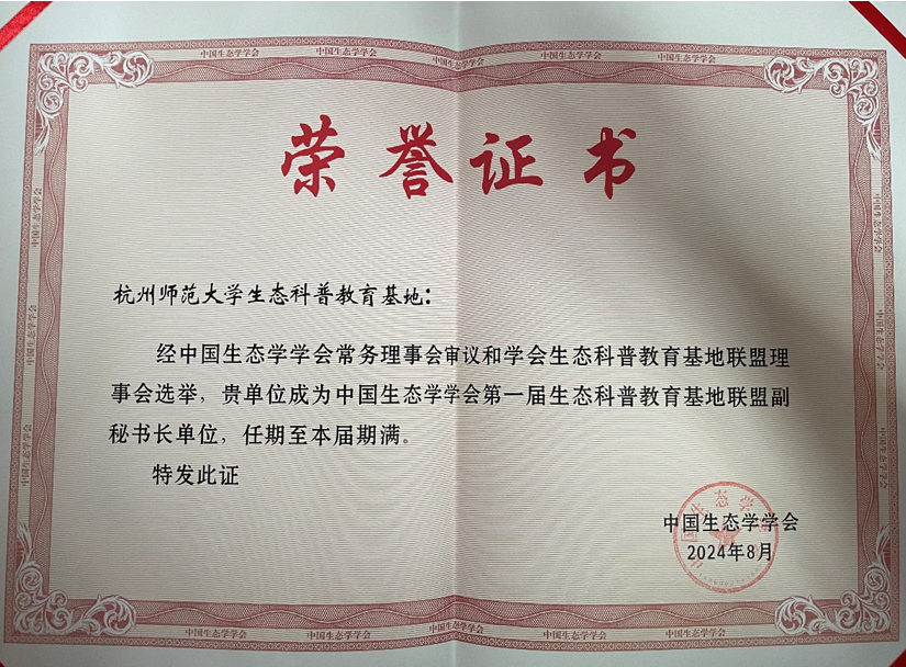 杭师大生态科普教育基地获颁联盟副秘书长单位荣誉证书