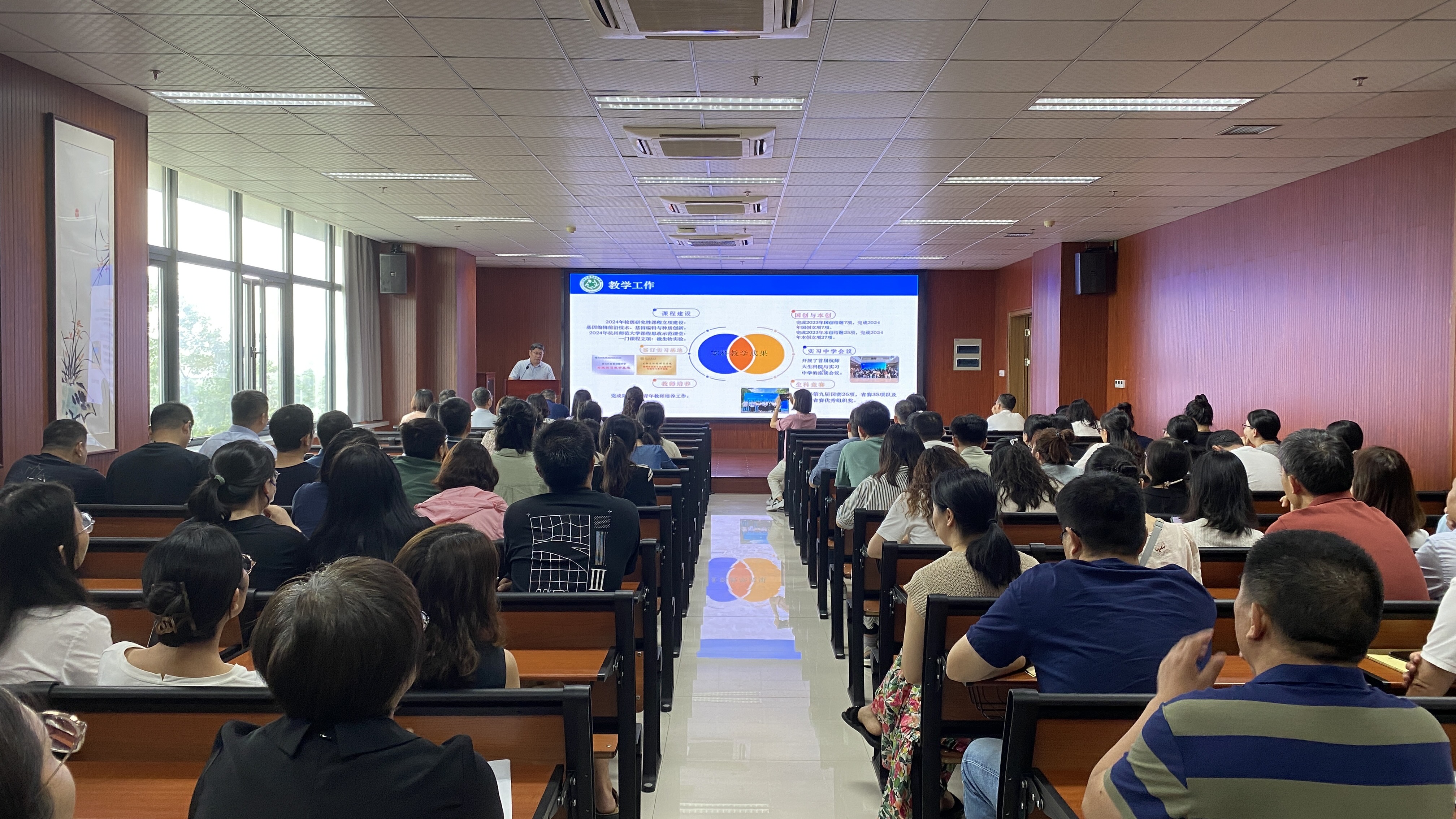 薛大伟院长首先通报了今年上半年学院的主要工作,他详细总结了学院在教学科研、党建工作、人才引进、学生培养和实验室建设等方面的进展,并着重传达了学校暑期工作会议的精神,强调了新学期学院发展的重点方向和目标。