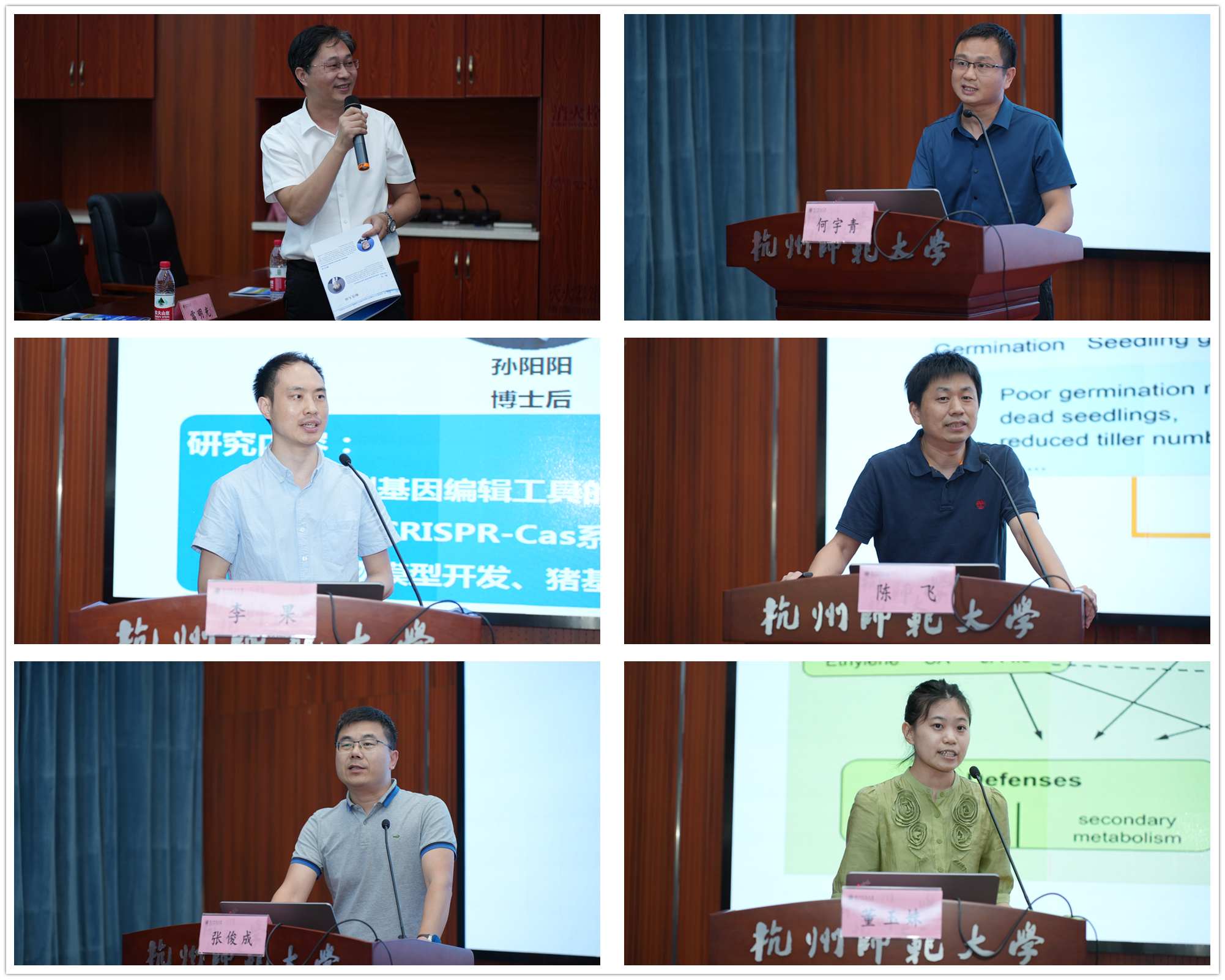来自湘湖实验室、省农科院和杭师大生科院的10位青年学者作了学术报告。51黑料 生科院副院长于彦春教授主持了上午的研讨会。国家杰出基金获得者、湘湖实验室研究员林荣呈、杭师大生科院雷明光教授、省农科院/湘湖实验室刘娜副研究员、湘湖实验室薛茗元研究员、杭师大生科院党聪博士分别作了《植物光信号与单线态氧信号互作的调控机制》、《植物磷信号感知与磷稳态调控机制》、《豌豆重要性状遗传解析与分子育种》、《反刍动物消化道微生物资源挖掘与功能解析》、《Bt水稻对非靶标害虫褐飞虱影响的机制研究》的主旨报告。