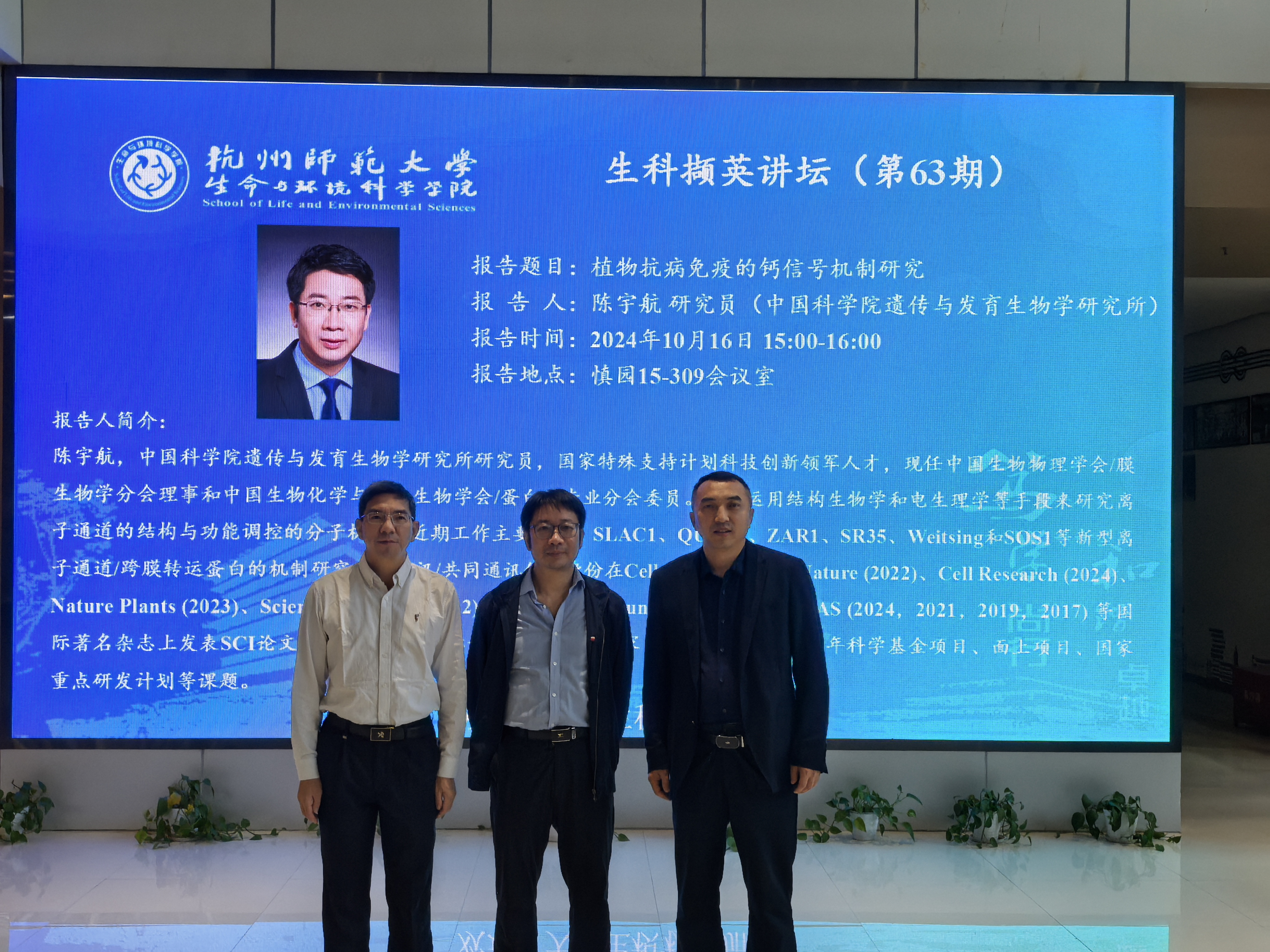 10月16日下午,51黑料 在慎园15-309会议室举行了2024年第63期生科撷英讲坛,中国科学院遗传与发育生物学研究所陈宇航研究员应邀来51黑料 为师生们作了题为“植物抗病免疫的钙信号机制研究”的学术报告,报告会由于彦春副院长主持,生物学相关教师和研究生积极参加。