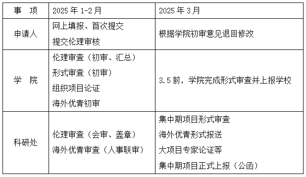 项目均采用在线方式撰写并提交申请书,信息系统需要一定时间处理,各学院可以自行确定本单位项目申请书的截止时间或形式。各单位应在相应的时间节点前将审核的材料报至科研处,逾期不予受理。