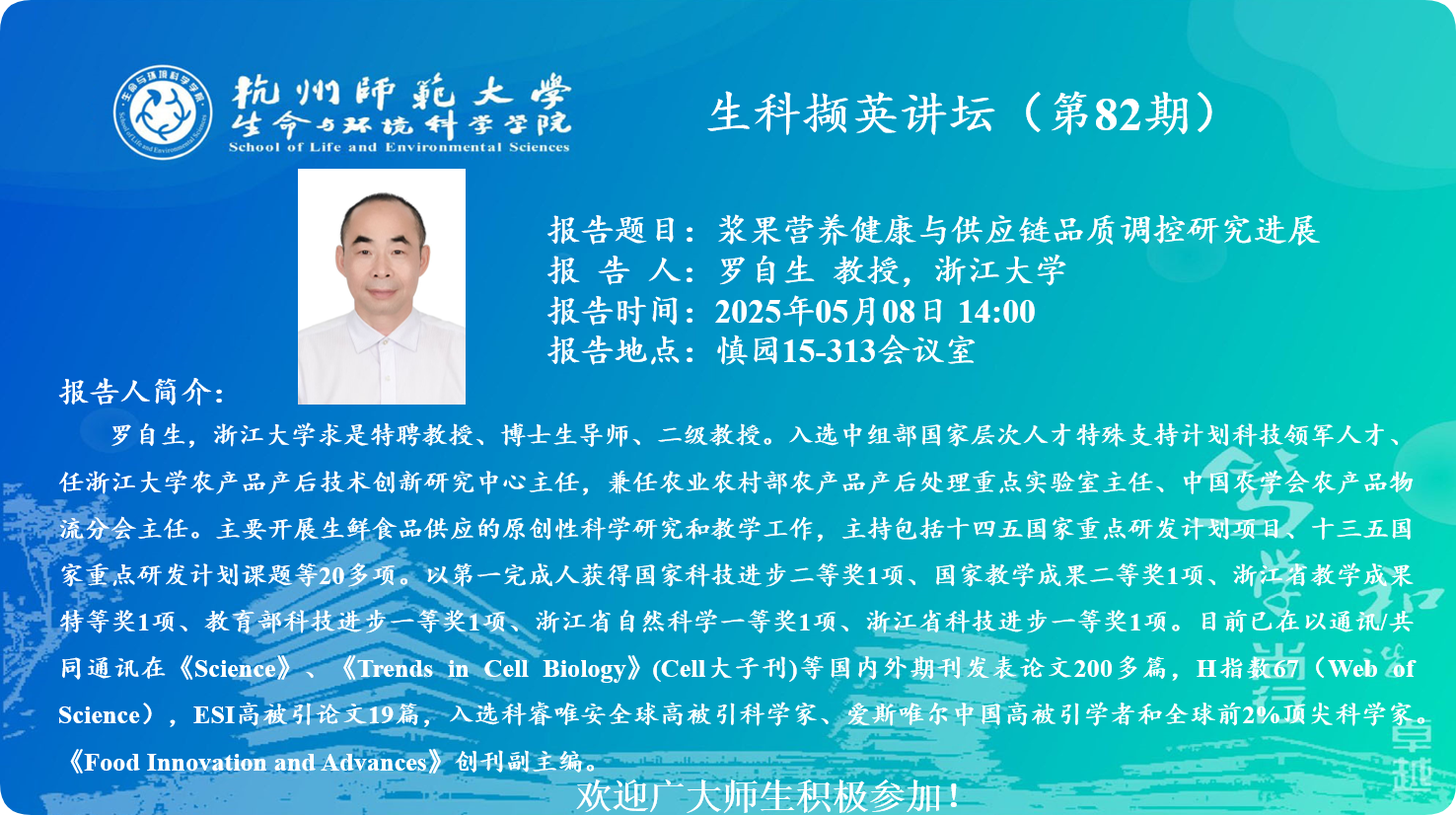 罗自生教授讲座通知2025.05.08