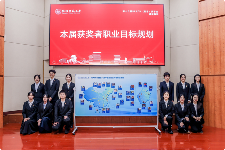 鲍学军作为校友代表讲话,向获奖学子致以热烈祝贺。他回顾道,16 年前,自己与徐博华、丁永明、方剑成三位校友共同发起 REACH 奖学金,希望以这种方式回馈母校、致敬母校。他表示,这份奖学金虽规模不大,但意义深远,是国家奖学金的有益补充,承载着 “尊重、活力、勤勉、创新、诚实”的理念。鲍学军对同学们以奖学金为目标勤奋进取的状态感到十分欣慰,表示看到了同学们用汗水铸就成绩,让奖学金从一项荣誉转化为奋斗的鼓励和见证,而这一历程赋予了奖学金真正的价值与意义。他鼓励大家打破专业局限,积极探索创新,发挥主观能动性,把握人生无限可能;在人工智能浪潮冲击教育的当下,以能力为本,锤炼综合素养。他坚信,杭师大作为浙江发展的重要推动力量,在师生们的共同努力下,必将发展越来越好,同时,REACH 奖学金也会与母校一同蒸蒸日上。