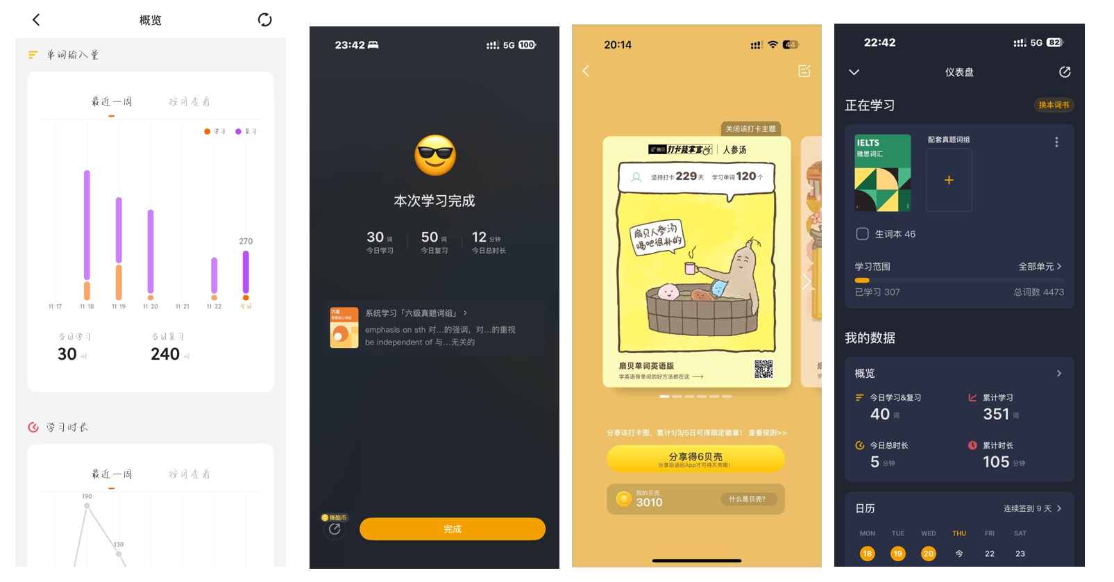 图一 参赛寝室成员英语单词学习打卡记录