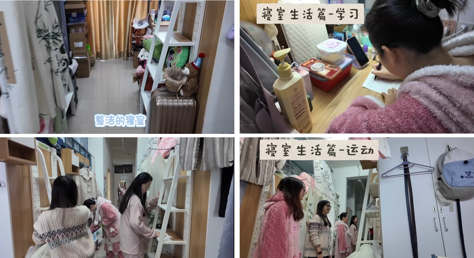 在“筑梦研寝——‘我的科研小窝’主题短视频征集大赛”中,同学们通过镜头生动展现了学术型、人文型、活力型等各具特色的寝室风貌,体现了新时代研究生对文明寝室文化的深刻理解和积极构建