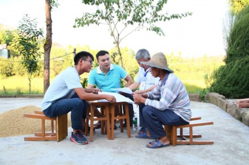 巴中市恩阳区党风廉政建设群众监督中心工作人员正在贫困户家中调查了解村“两委”责任落实情况(邓誉 摄)