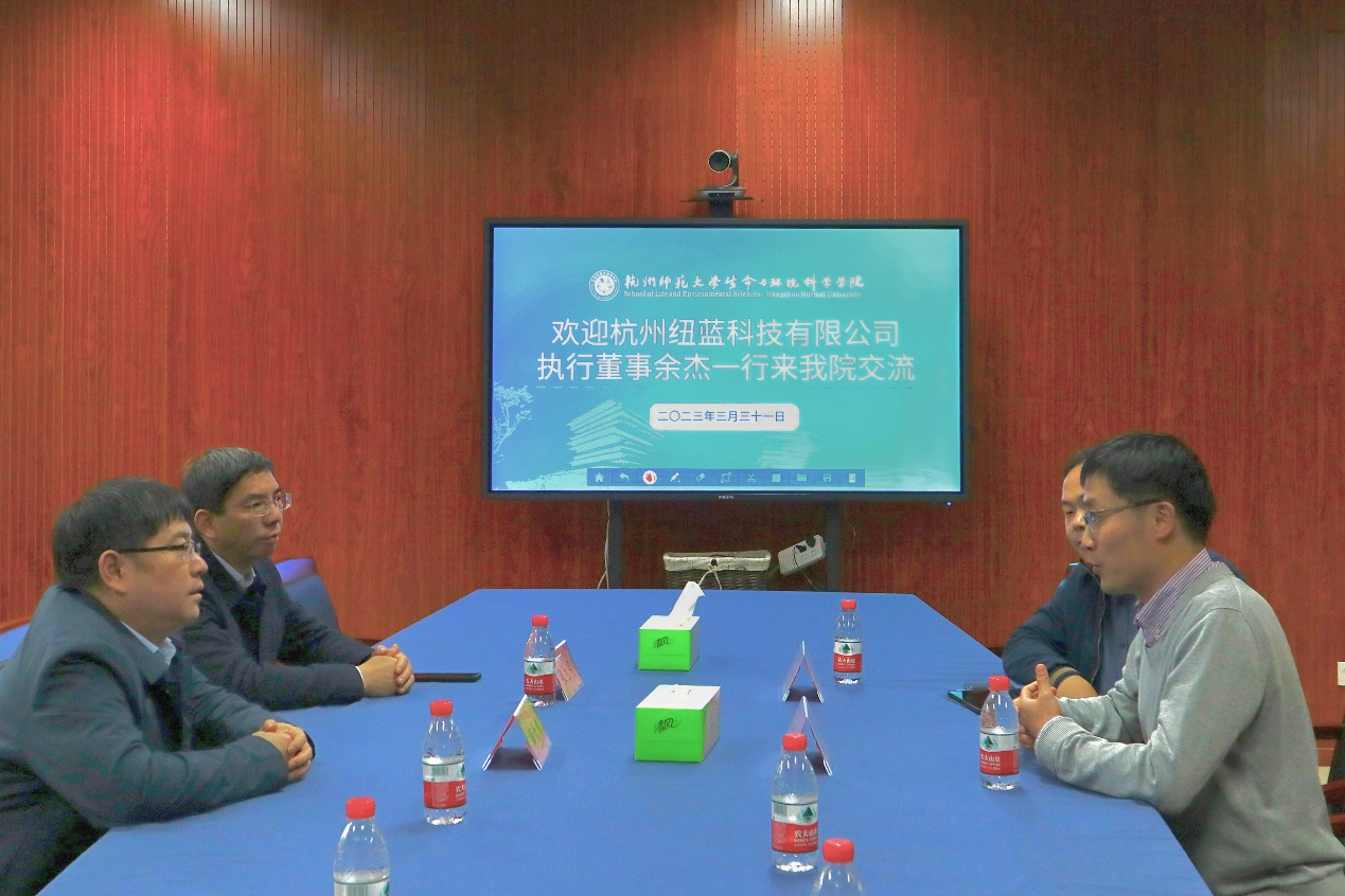 2023年3月31日,杭州纽蓝科技有限公司执行董事余杰一行到学院交流,生科院党委书记张立明、院长薛大伟等参加,双方就学生就业、本科生定向培养、研究生培养、平台合作等进行了合作探讨。