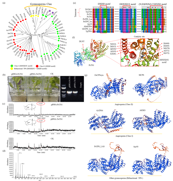 对萜类合酶(催化类异戊二烯环化反应的酶)的研究,为揭示陆生植物中特有的萜类化合物生物合成途径的演化规律提供了重要参考。二萜类化合物的生物合成可由三类不同的酶启动,即Ⅰ类萜类合酶、Ⅱ类萜类合酶以及Ⅰ/Ⅱ双功能萜类合酶,这三类酶均以牻牛儿基牻牛儿基焦磷酸(GGPP)为反应前体。目前已在裸子植物和石松类植物中,例如巨冷杉、香脂冷杉、银杏和兖州卷柏等物种,鉴定出双功能萜类合酶。紫杉烷类化合物生物合成的关键起始步骤,是在紫杉二烯合酶(TS)的催化下,线性GGPP 发生环化反应生成紫杉-4(5),11(12)-二烯。已有研究表明,短叶红豆杉中的紫杉二烯合酶属于Ⅰ类萜类合酶。萜类合酶的分类主要依据DXDD和DDXXD/E这两个基序的有无情况。值得注意的是,红豆杉科植物中已知的紫杉二烯合酶缺乏经典的DDXD基序,因此被归为Ⅰ类萜类合酶而非双功能萜类合酶,这一特征体现了红豆杉科在裸子植物中的独特演化地位。核心蛋白区域在红豆杉科与其他裸子植物萜类合酶之间具有高度相似性,表明该区域在演化进程中具有保守功能。