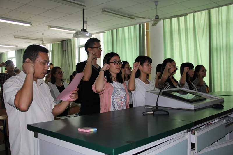 为庆祝建党93周年,加强新老党员的交流与融合,进一步发挥学生党员的先锋模范作用,6月25日生科院党委召开了新入党员宣誓暨老党员重温入党誓词大会。院党委书记周春儿,院党委副书记金岳祥、各党支部书记以及学生党员出席了本次大会。大会由党建组织员倪雅老师主持。