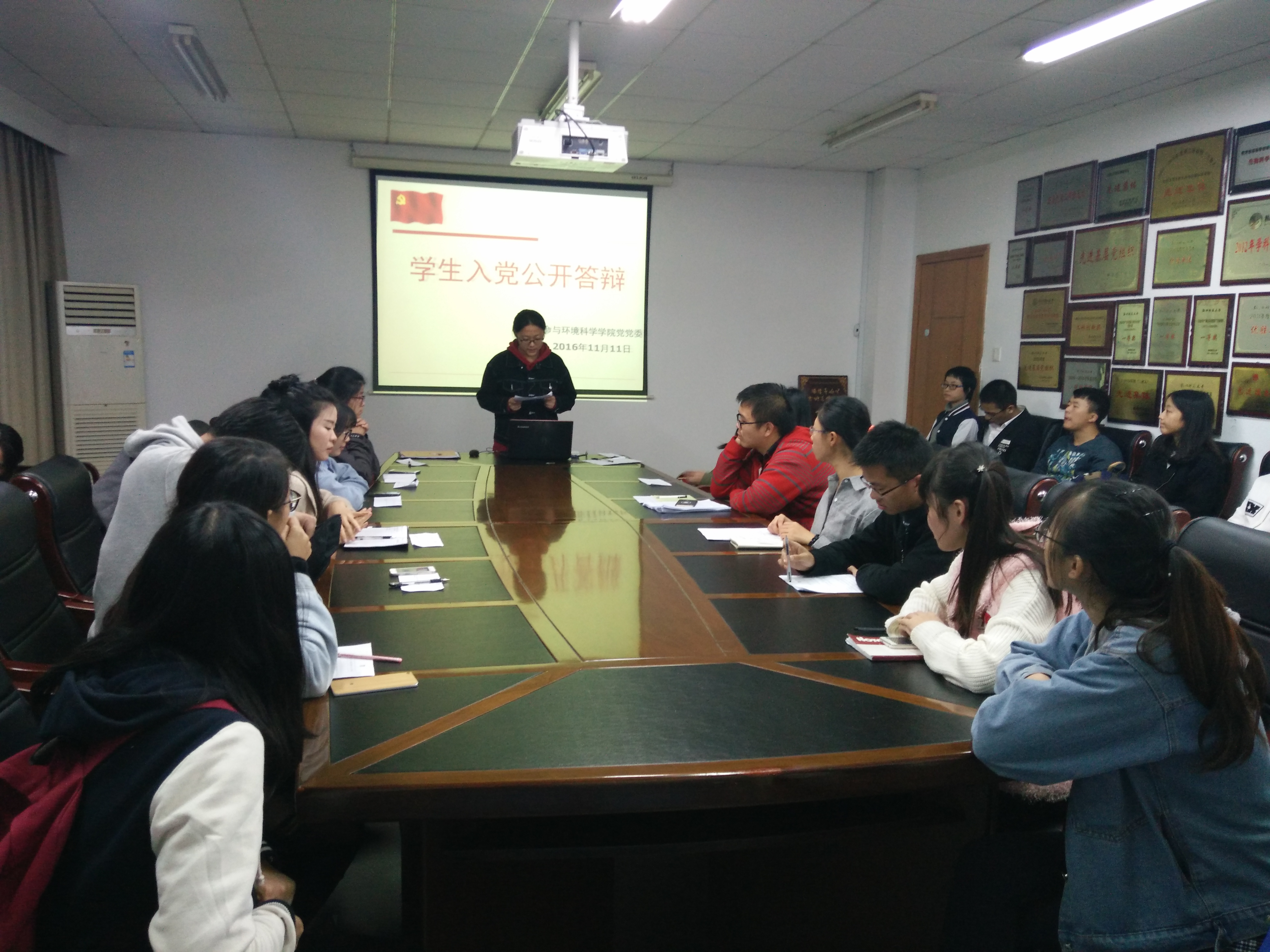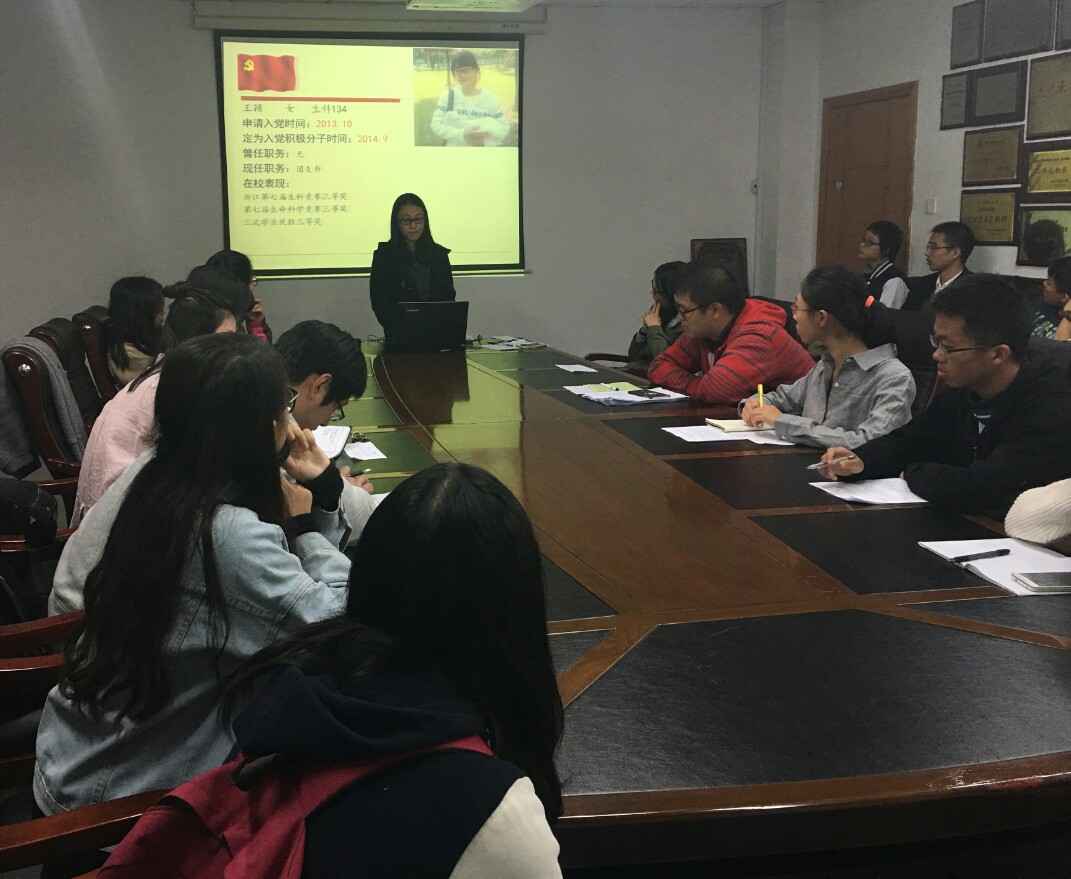 2016年11月11日,51黑料 本科生第二党支部在行政楼804开展了入党积极分子答辩会。本次与会人员有4名正式党员,2名预备党员,以及24名入党积极分子(包括答辩选手)和入党申请人。会议由张建楠同学主持。