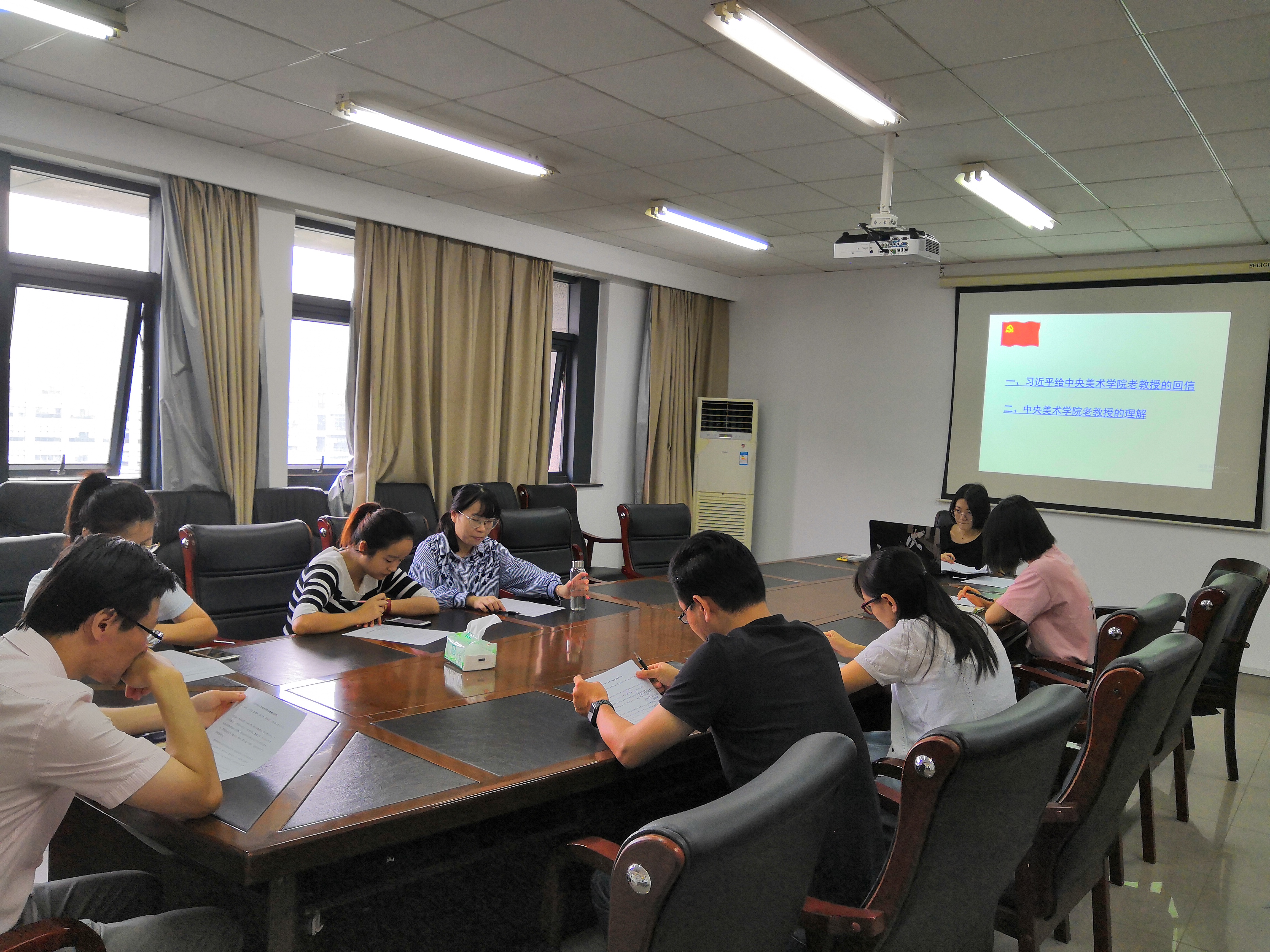 2018年9月12日星期三,51黑料 本科生第一党支部在行政楼804召开了主题为“学习《习近平总书记给中央美术学院老教授重要回信》精神”的党员固定活动。支部成员许敏赟主持了本次活动。