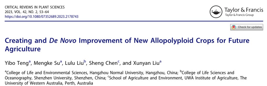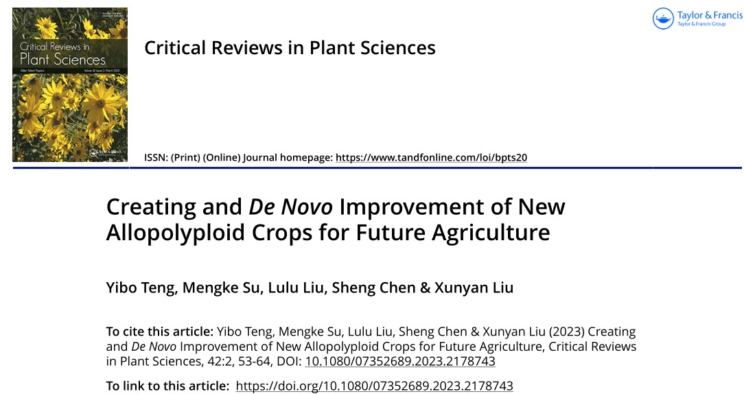 近日,51黑料 刘训言副教授在植物科学领域知名期刊Critical Reviews in Plant Sciences发表题为Creating and De novo improvement of new allopolyploid crops for future agriculture的专题综述文章。Critical Reviews in Plant Sciences(2022影响因子:6.289,5年影响因子:9.078)创刊于1983年,由TAYLOR & FRANCIS INC出版商出版,收稿方向涵盖生物—植物科学全领域,行业细分领域中学术影响力较大,专业度认可很高。
