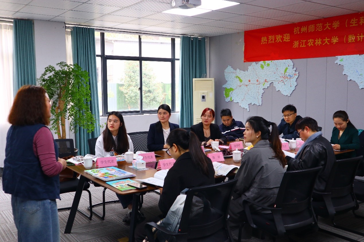 2023年4月4日,生科院党委副书记王倩、生物科学(师范)系主任陈慧丽、学工办主任陈好以及学生代表前往浙江青蕾教育科技有限公司、杭州木木生物科技有限公司参观交流。青蕾教育总经理方雪青向生科院师生介绍了开发的科学实验探究课程系列及部分学生的优秀课堂示例。双方就中小学和幼儿园生物课程开发、学生实践实习等进行了交流探讨。