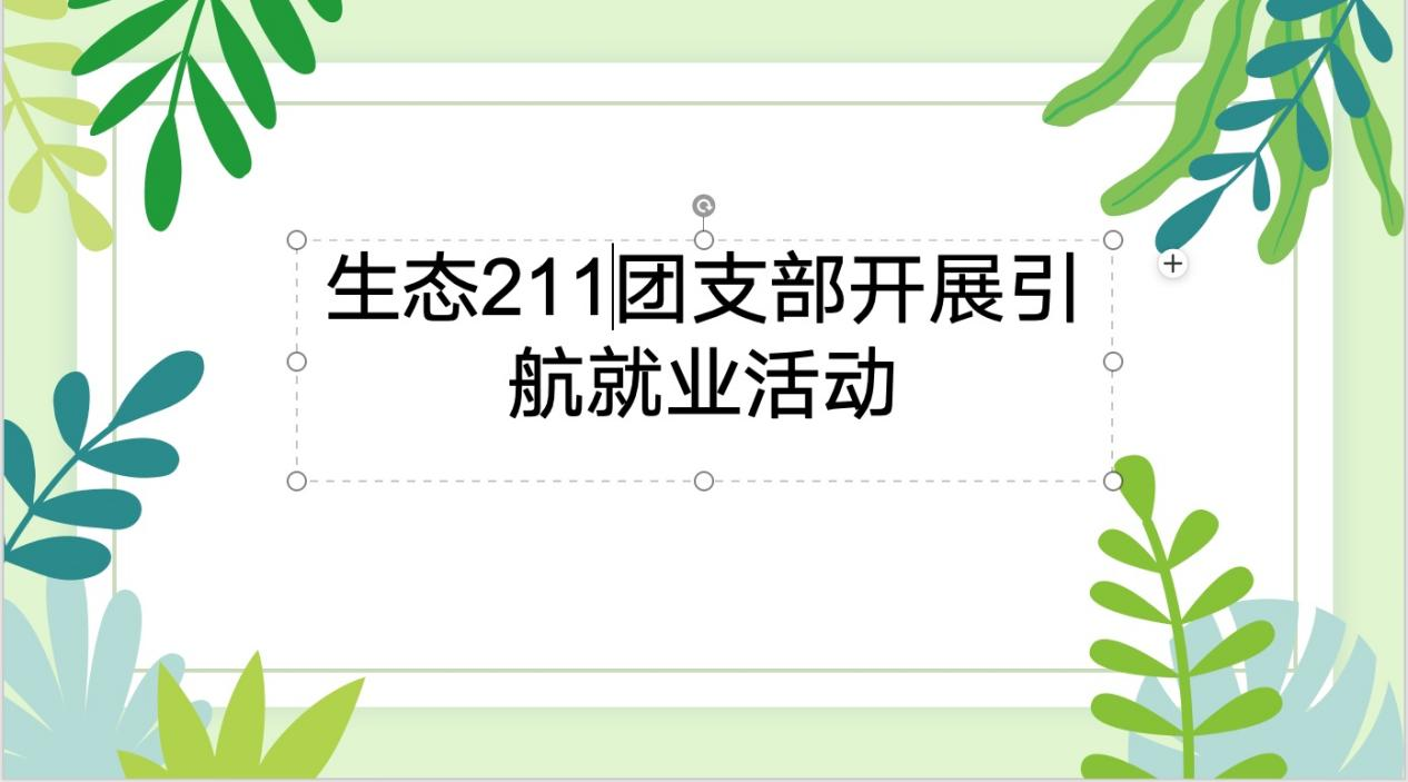 在这次大学生就业引航主题活动中,生态211团支部开展了主题班会。此次主题班会着重讲述树立正确的择业观、就业观的重要作用,提醒同学们要做好职业生涯规划,清楚了解并把握就业方向和职业目标,为将来走上工作岗位后摆正工作态度、提升工作业绩打下坚实基础。