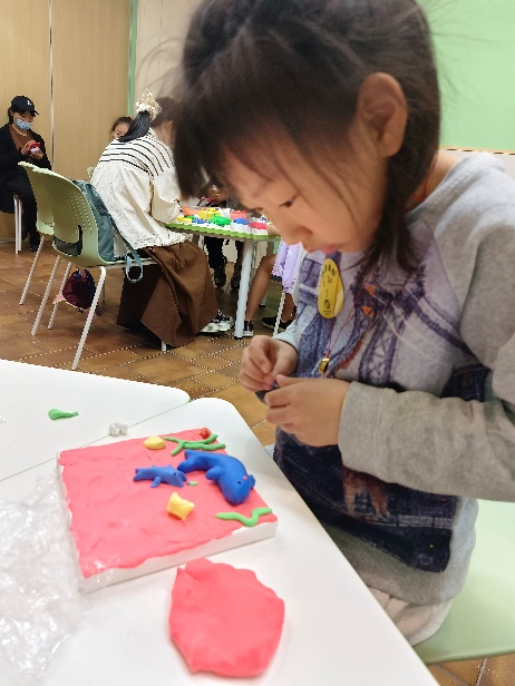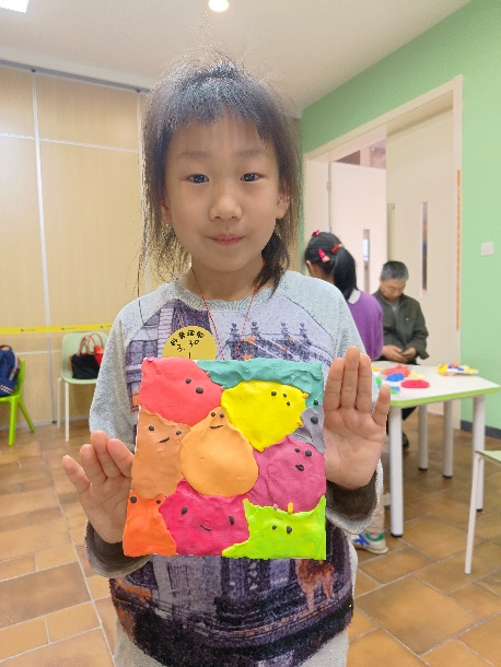 时间很快来到了一点半,小朋友们陆陆续续地来到了教室,志愿者开始给小朋友们讲课,通过简洁通俗的语言,高效地与家长、孩子们沟通,介绍了地球现存的环境污染问题及相关解决措施,教会了小朋友们日常中保护环境的小妙招,小朋友们聚精会神地听着学着,在脑海中迅速构思了自己的作品。到了自己动手制作的环节,小朋友们迫不及待地开始用软土捏出了不同的形状,其中有一个小朋友特别厉害,居然徒手捏出了贝壳和海豚,小朋友们还会混色,用两种不同的颜色融合成一种新的颜色。随着白色的画板被五颜六色的黏土填满,活动走向尾声,孩子们心满意足地举着自己创作的艺术作品,成员们也完美地记录下了这美好的瞬间。