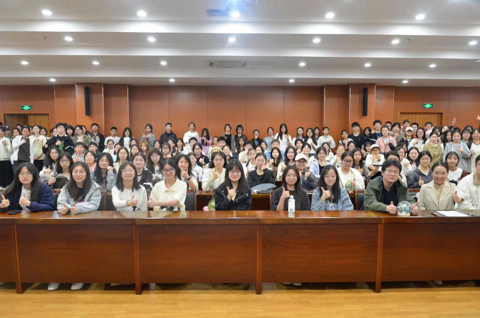 讲座后,学生代表为吴超送上精心准备的“永生花”摆件。现场同学们也和吴超进行合影留念。