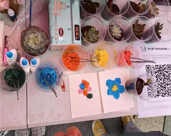 在萧瑟的秋风中,协会成员们以不输秋风的青春热情,书写了一段热爱与理想的佳话。各种以环保为主题的趣味活动,如将卫生纸简单处理后拼接成各种绚丽的图案、环保知识问答等吸引了同学们的目光。这些活动不仅寓教于乐,也获得了参与者们的点赞。