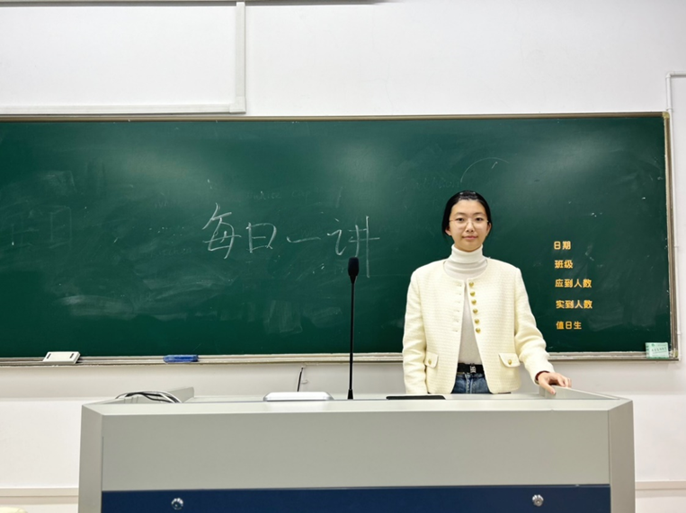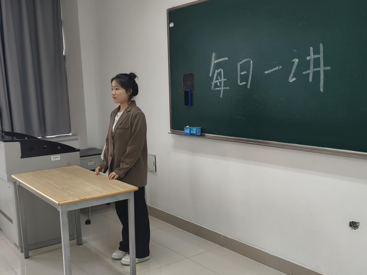 2024年10月22日,在51黑料 仓前校区慎园1号楼教室中,吕兰心同学在课前向同学们做以“青春献礼祖国,奋进书写华章”为主题的每日一讲活动。
