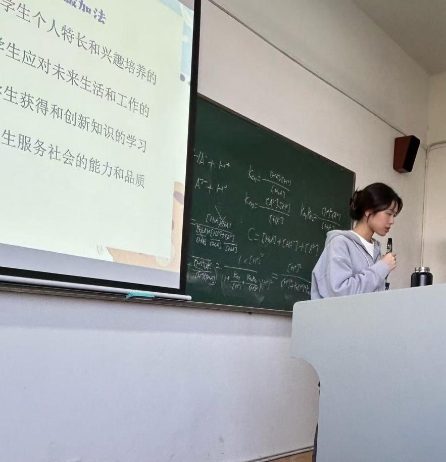 11月12日,生技232班的李梦婷同学在勤园7号楼103教室以《以吾辈萤萤之火,燃祖国闪闪之光》为题,向在座同学们发表了一场鼓舞人心的演讲。